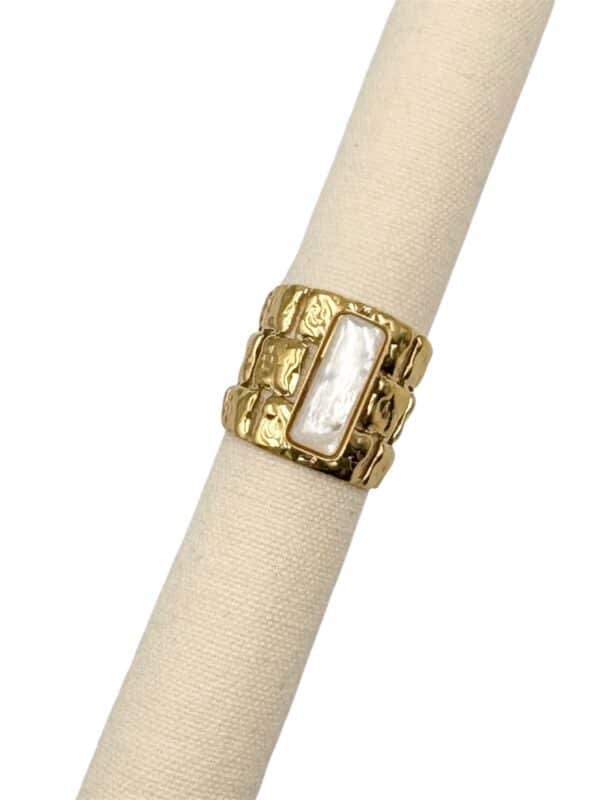 • Bague MATHILDE – Bague large avec pierre naturelle de nacre – Bijou doré en acier inoxydabl