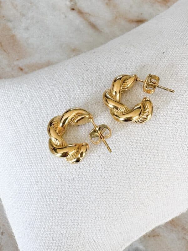 Boucles d’oreilles de type créoles fabriquées en acier inoxydable de couleur dorée ou argentée. Grandes, petites, torsadées, avec breloque, épaisse ou encore fine, notre collection de boucles est complétée quasi quotidiennement pour toujours plus de style