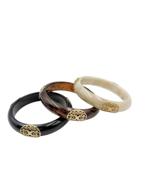 • Lot de trois bracelets à enfiler en acétate de couleur beige ambre et  taupe