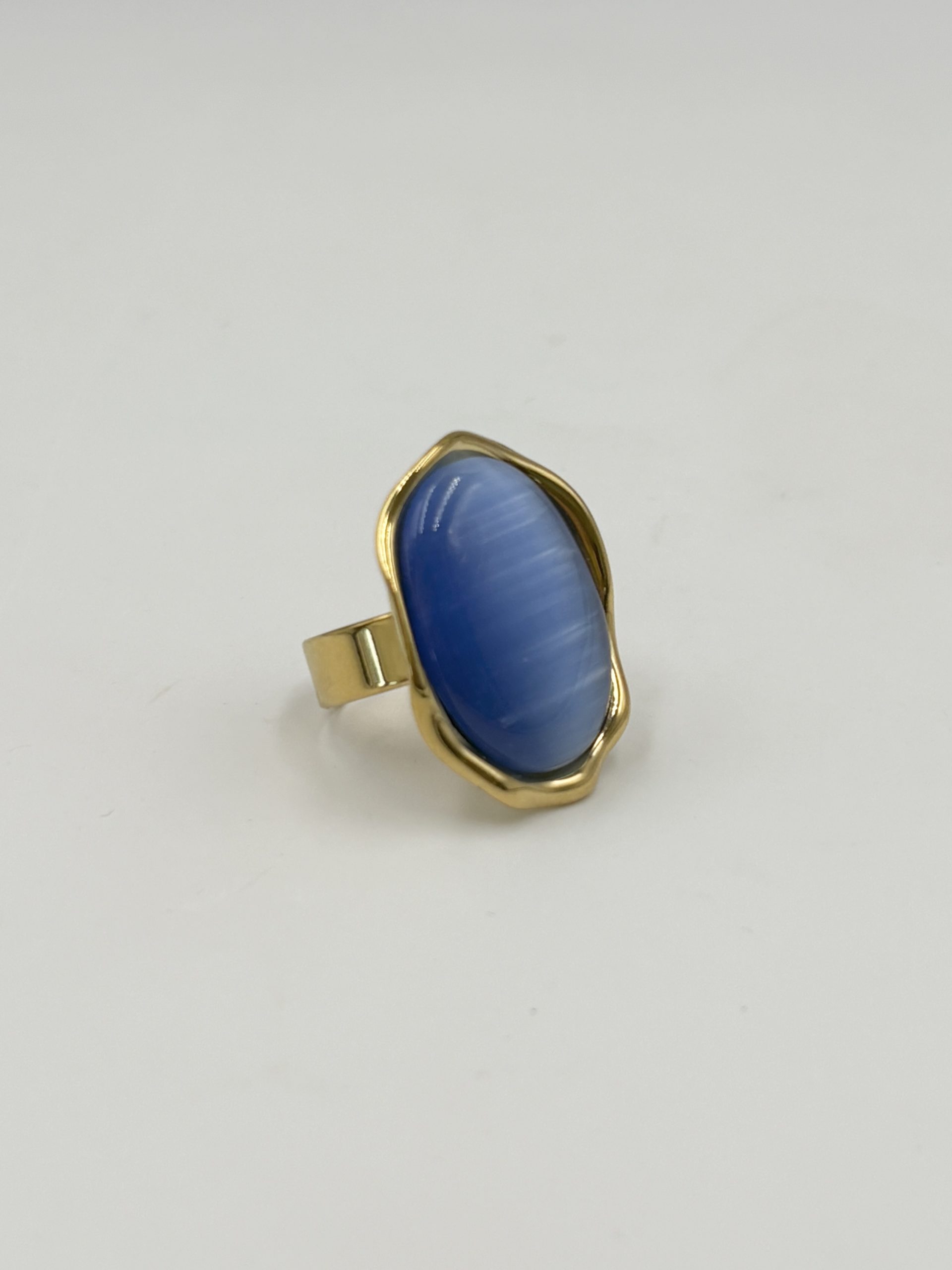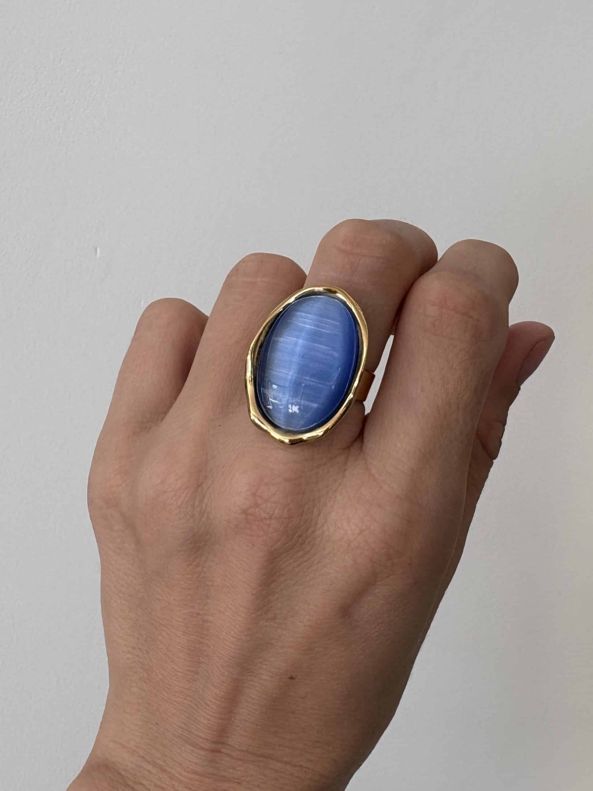 Bague LAUREEN – Bague large avec pierre naturelle de nacre bleue – Bijou doré en acier inoxydable