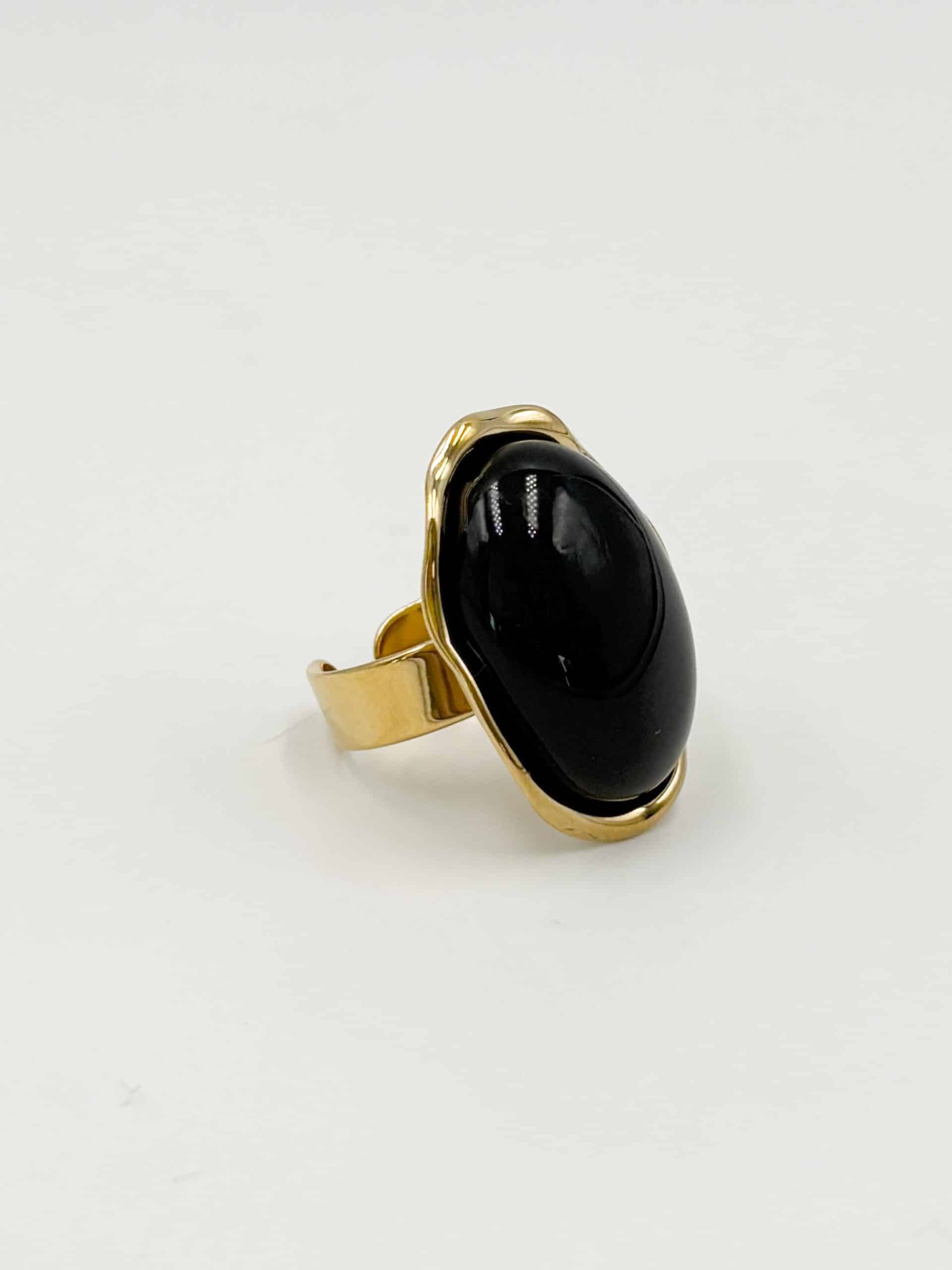 Bague LAUREEN – Bague large avec pierre naturelle d’onyx – Bijou doré en acier inoxydable