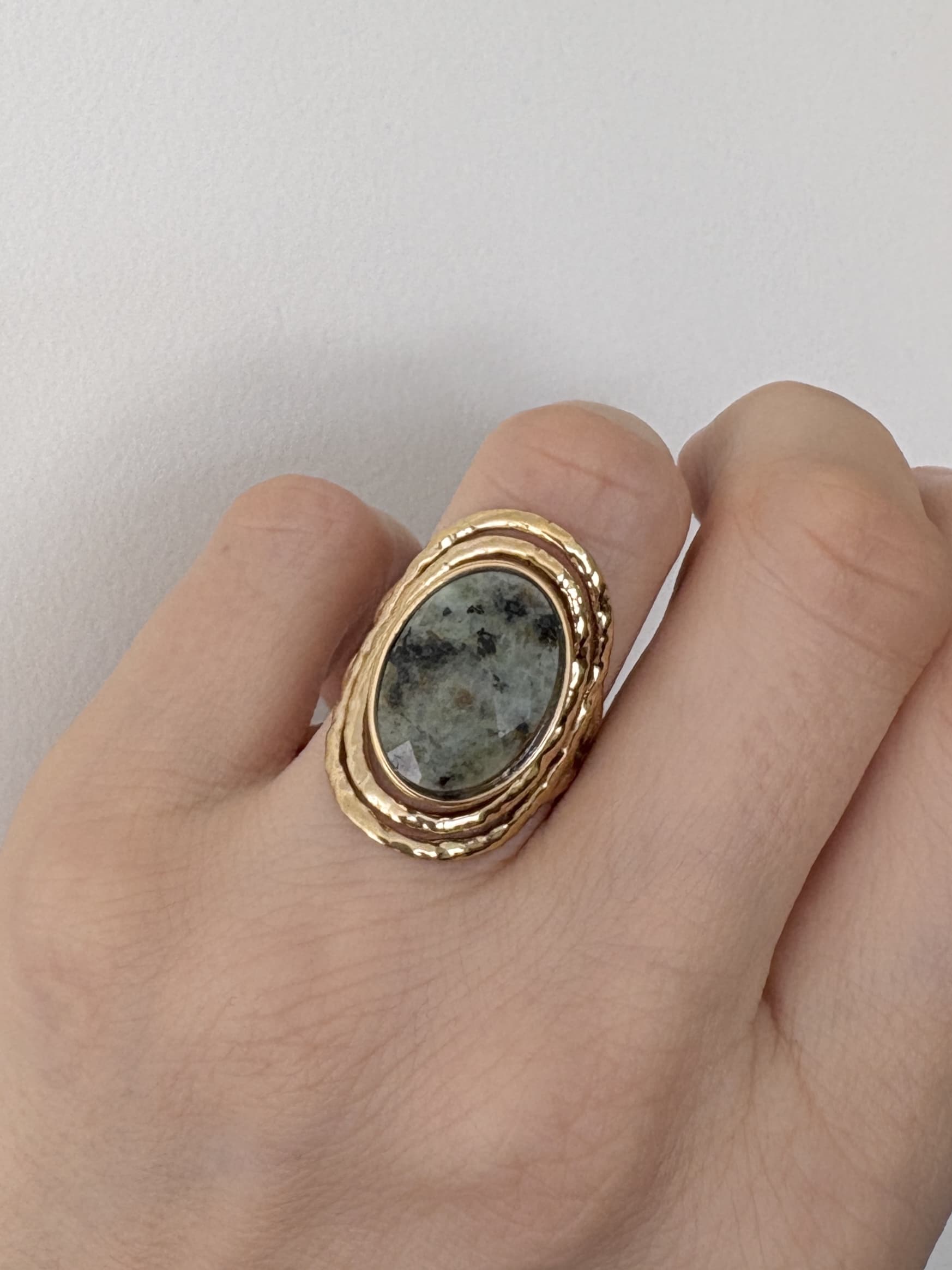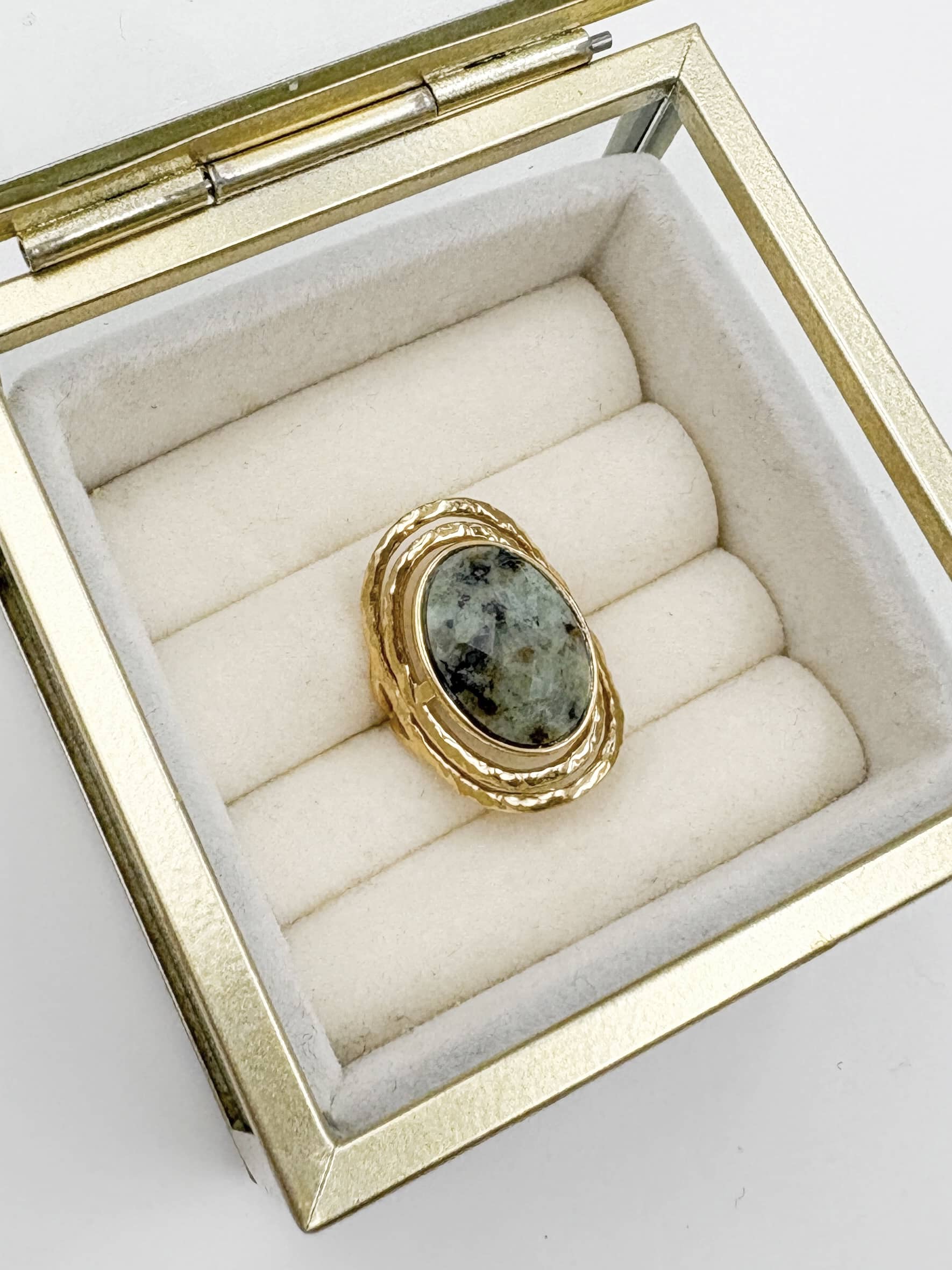 Bague MAYA – Bague large avec pierre naturelle de turquoise africaine – Bijou doré en acier inoxydable