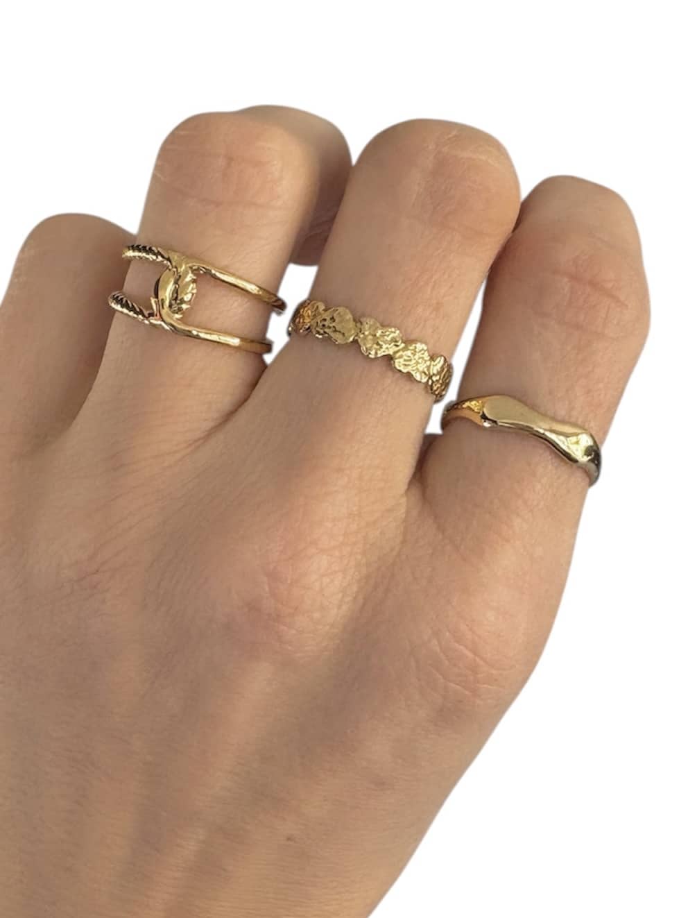 Bague fine composée de deux anneaux entrelacés en acier inoxydable de couleur or – Bijou en acier inoxydable