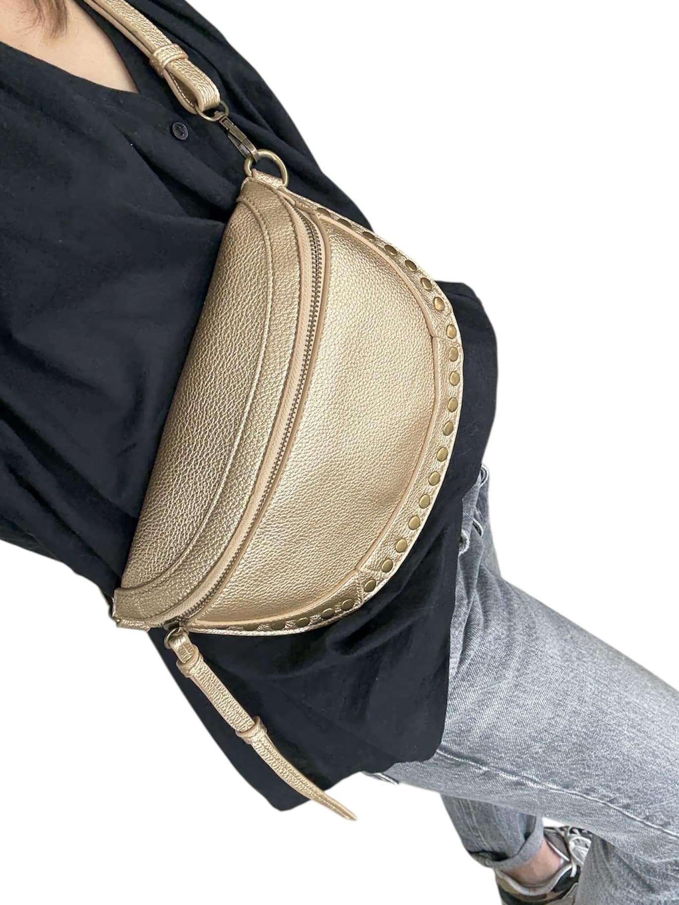 Sac banane clouté de couleur dorée
