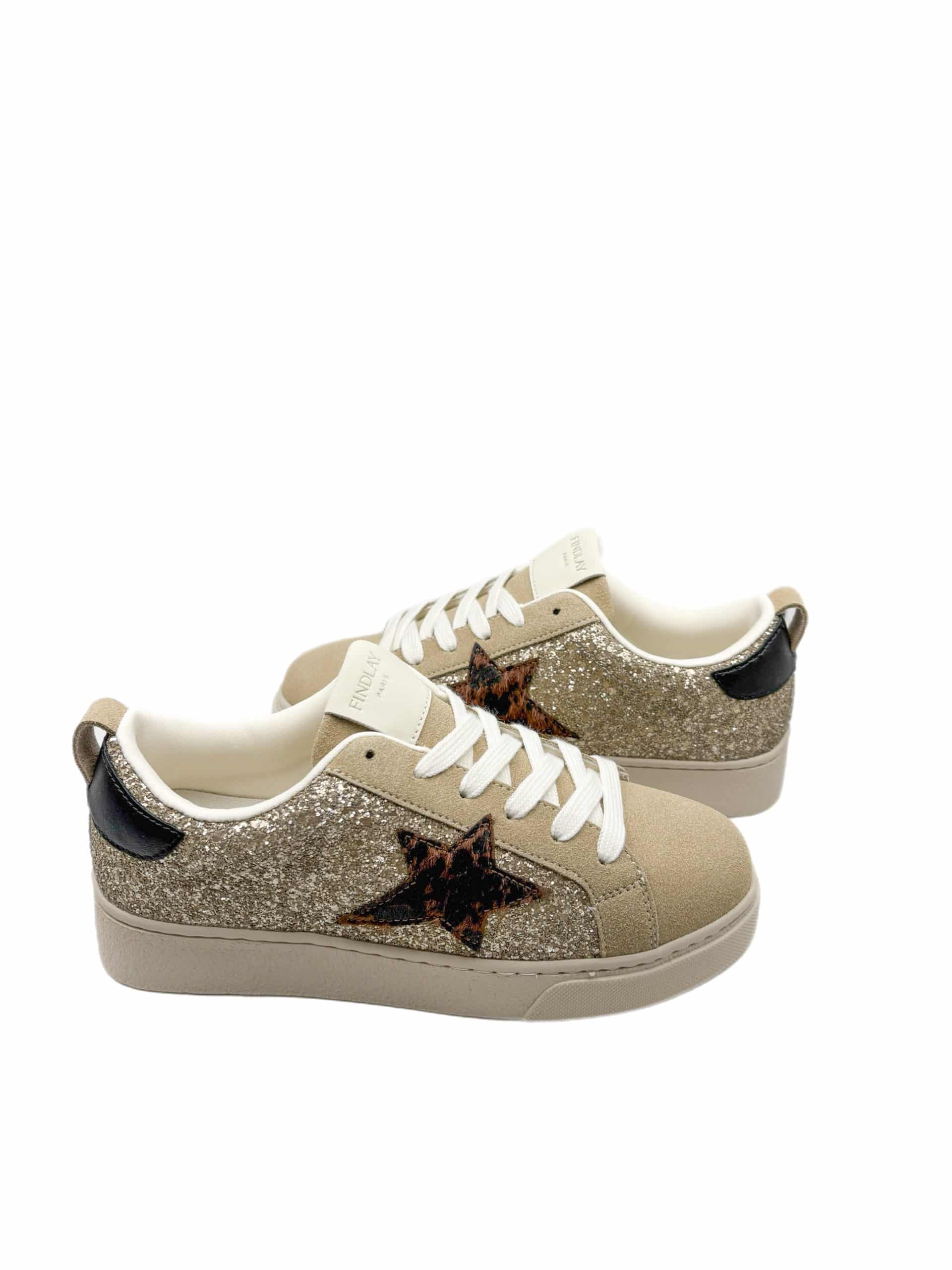 Baskets femme à paillettes dorées et étoile léopard
