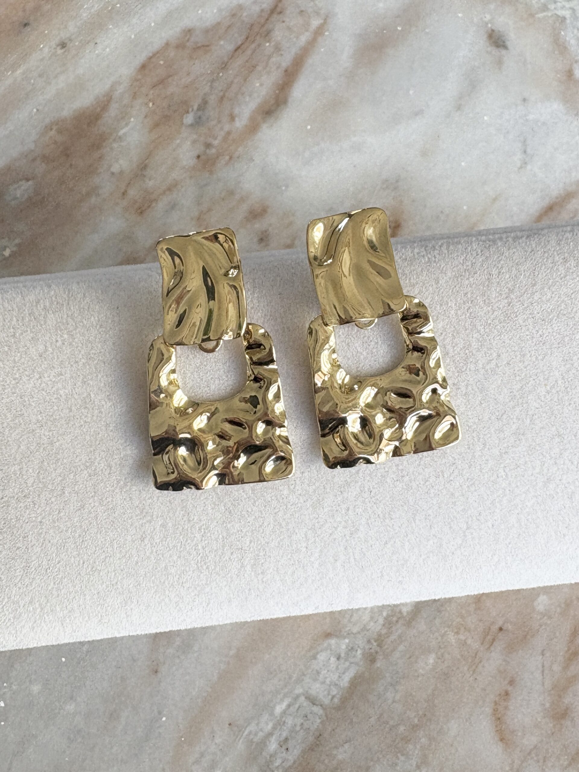Boucles d’oreilles pendantes composées de deux rectangles martelés – Bijou en acier inoxydable