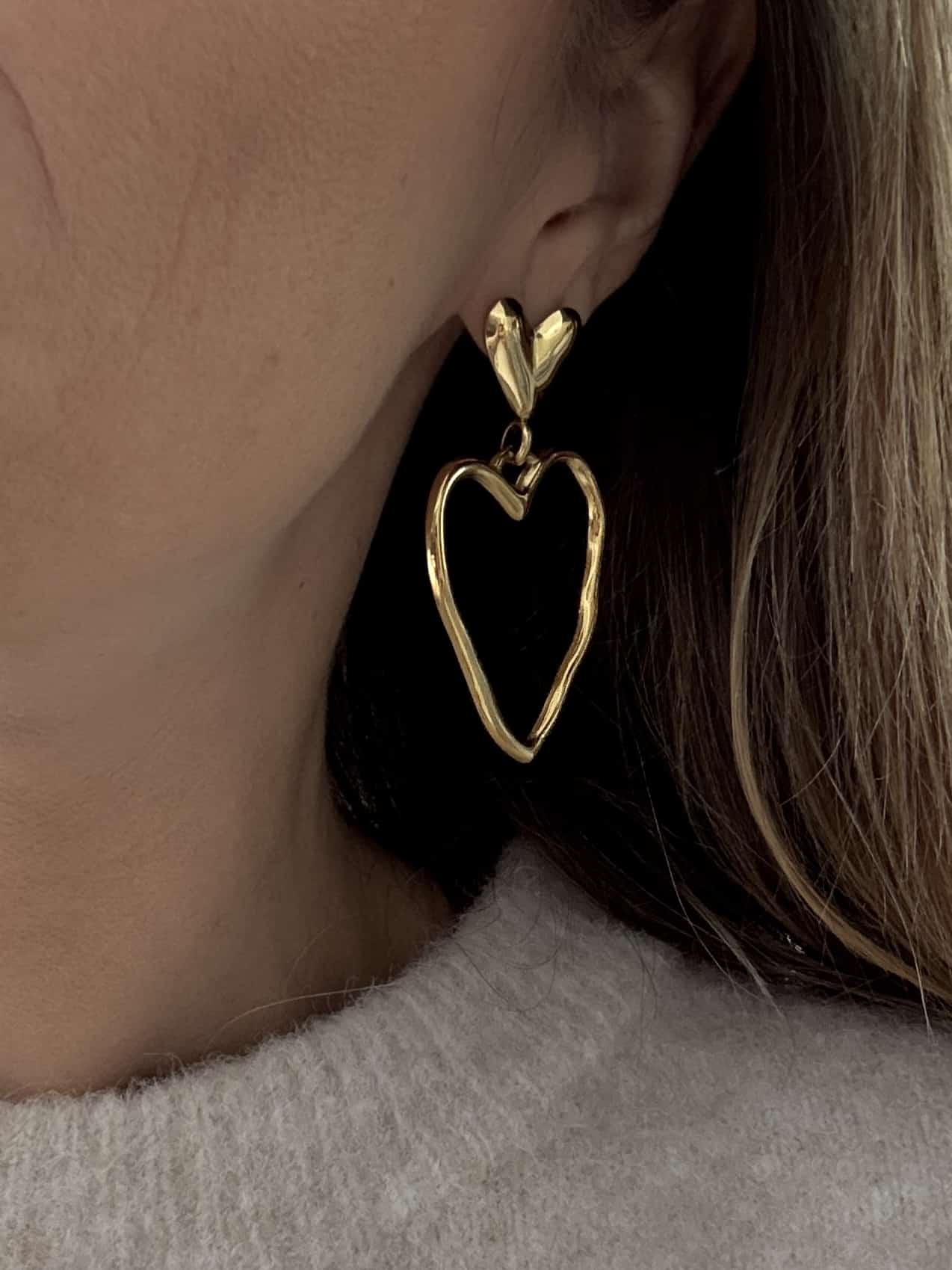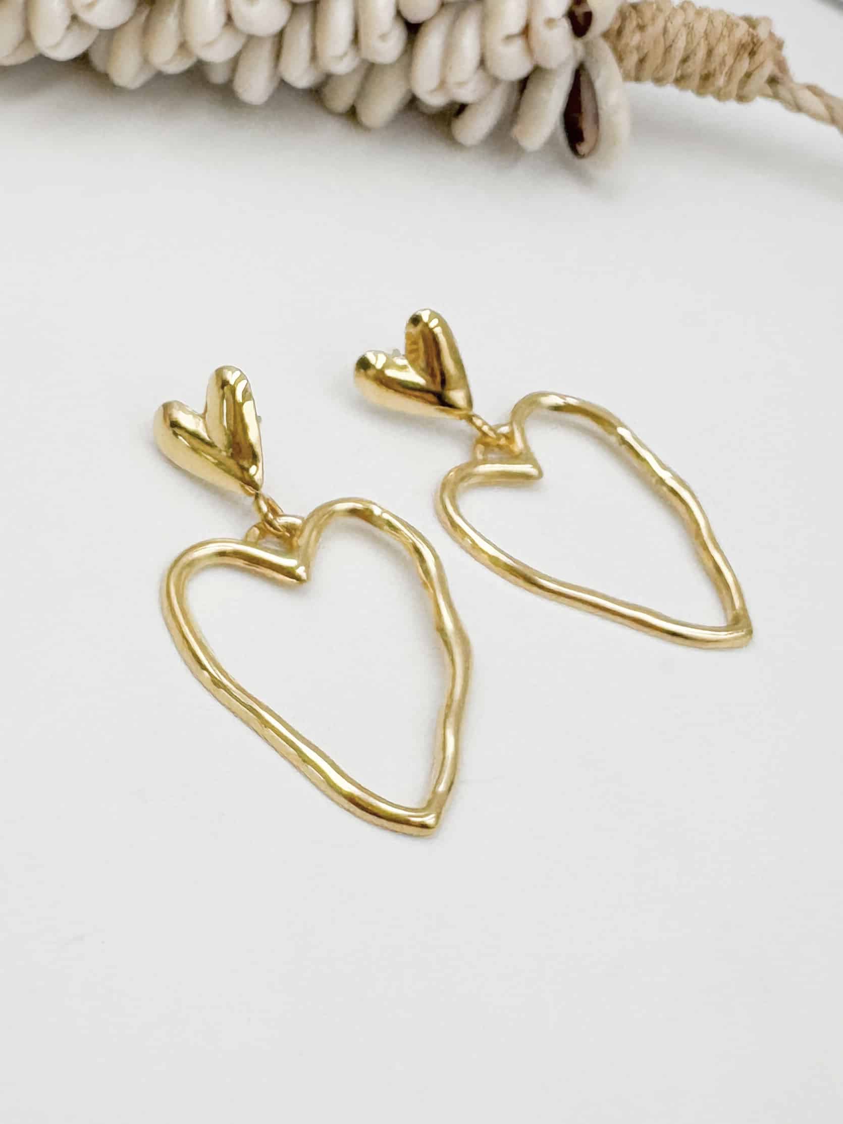• Composées d’une puce d’oreille en forme de coeur lisse ainsi que d’un pendentif en forme de coeur martelé