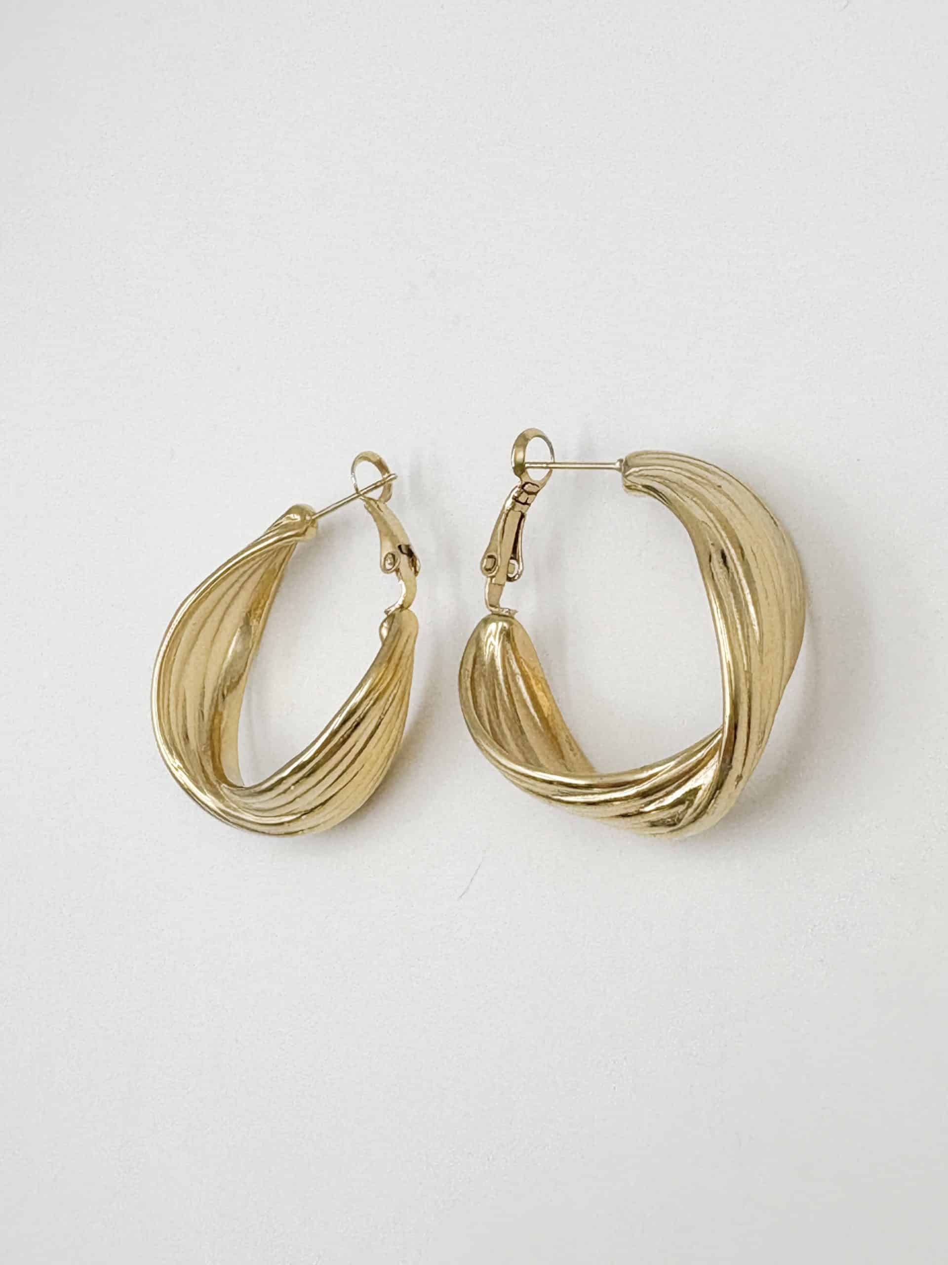 Boucles d’oreilles créoles torsadées en acier inoxydable de couleur dorée – Bijou en acier inoxydable