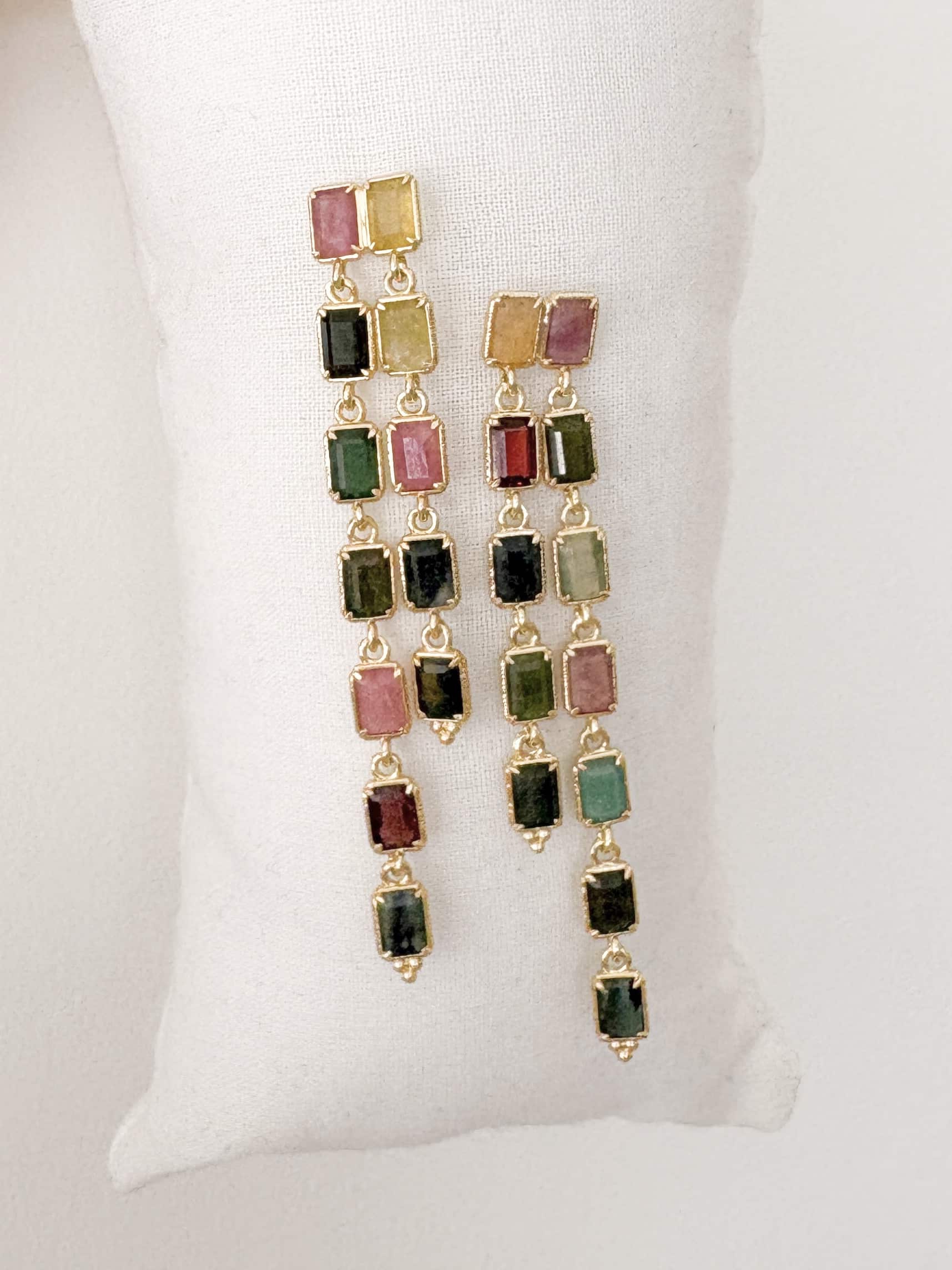 Boucles d’oreilles pendantes en acier inoxydable serties de pierres naturelles véritables – Bijou en acier inoxydable