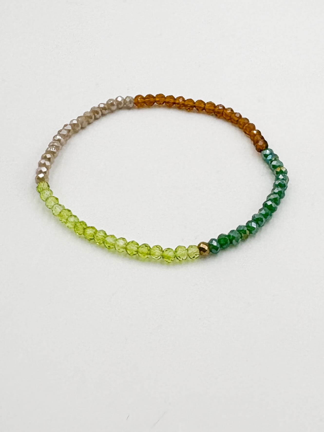 Bracelet composé de perles de verre, ainsi que d’une perle en acier inoxydable de couleur dorée