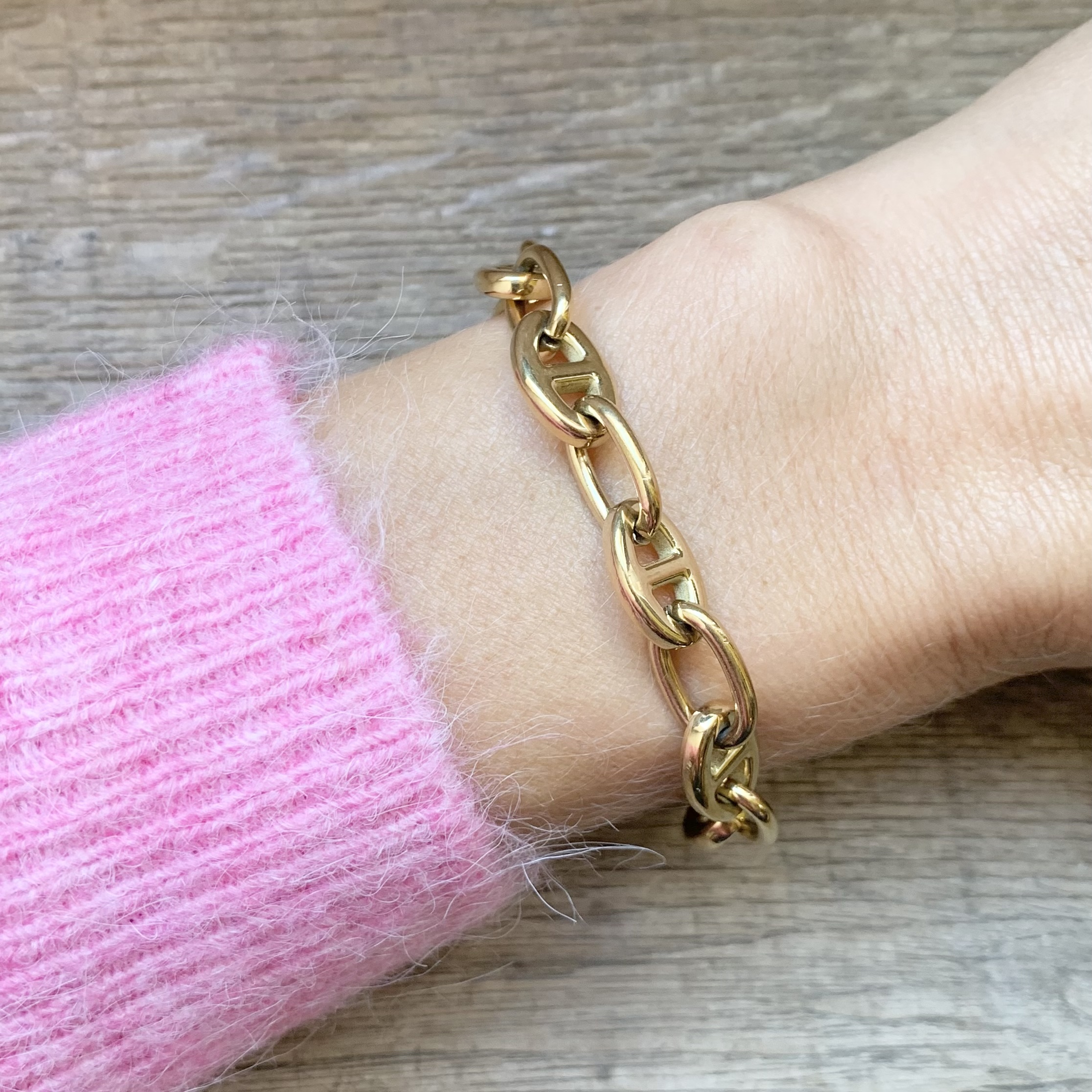 Joli bijou à très gros maillons hyper tendance. On adore ses maillons grain de café.