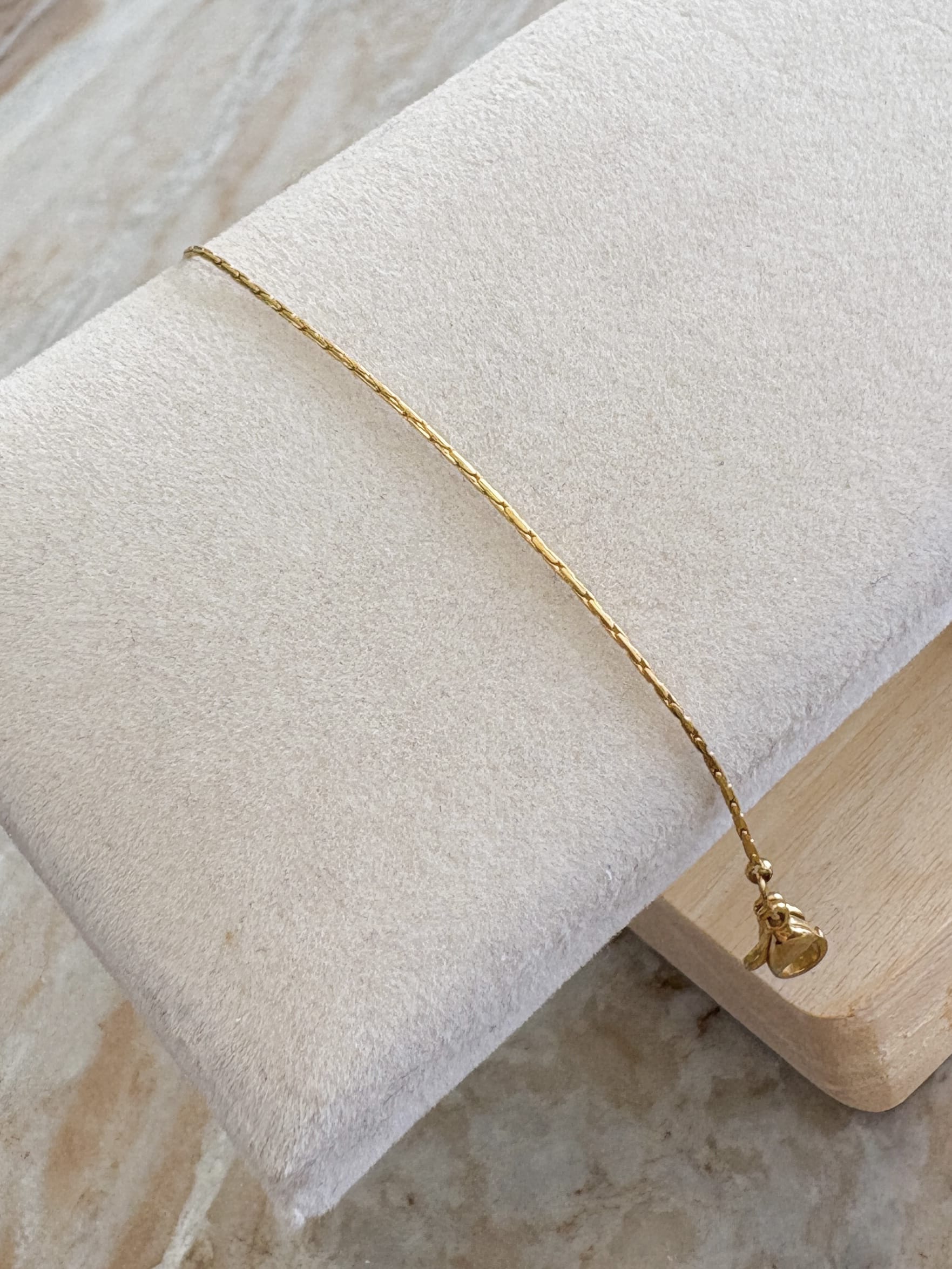 Apportez une touche de finesse et de lumière à votre poignet avec ce bracelet très fin en acier inoxydable doré, un bijou délicat pensé pour sublimer votre style au quotidien. Conçu et fabriqué à Paris, ce bracelet minimaliste allie élégance intemporelle et qualité durable.