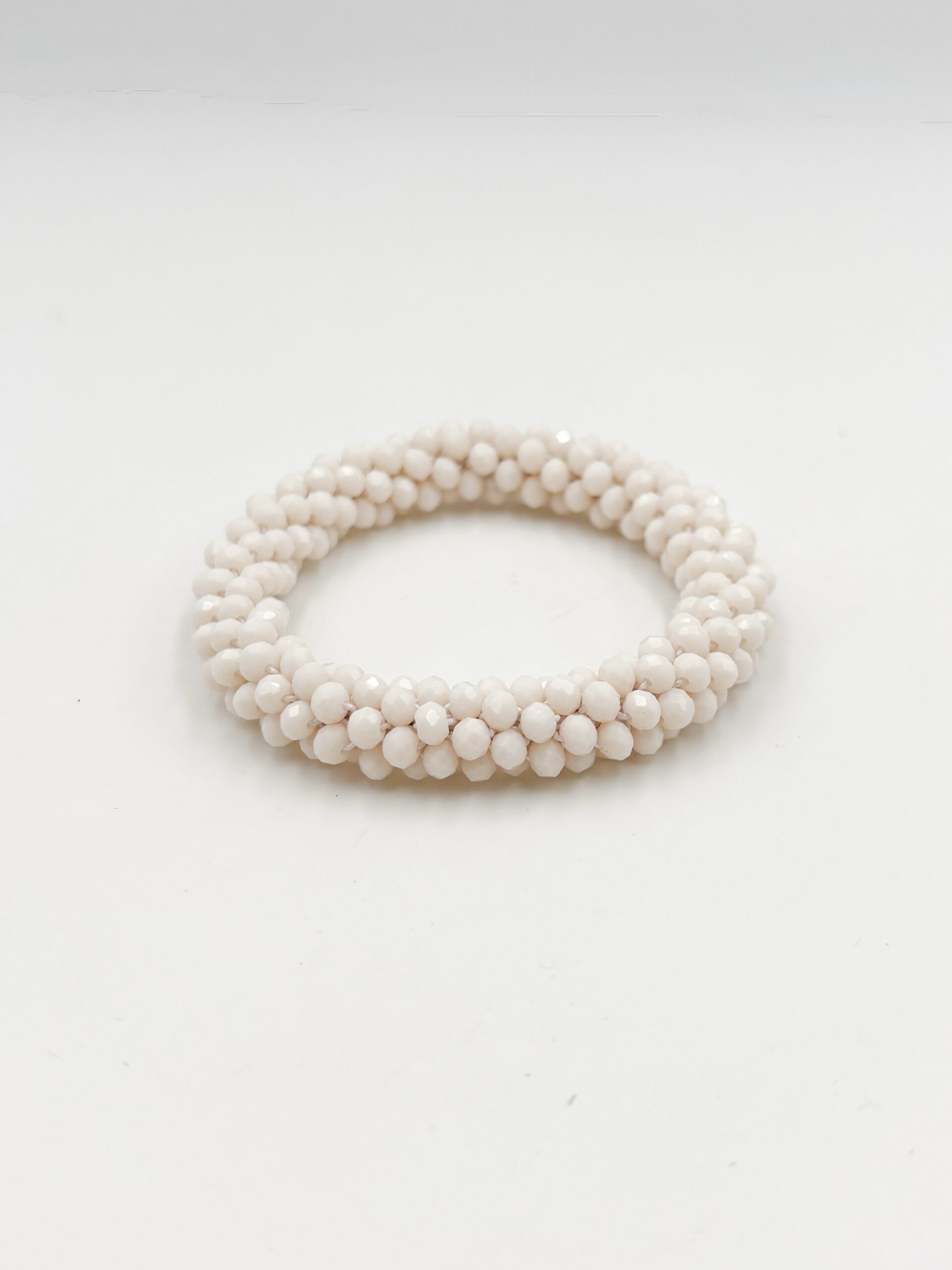 • Bracelet chouchou composé d’une multitude de petites perles de rocaille de couleur blanche