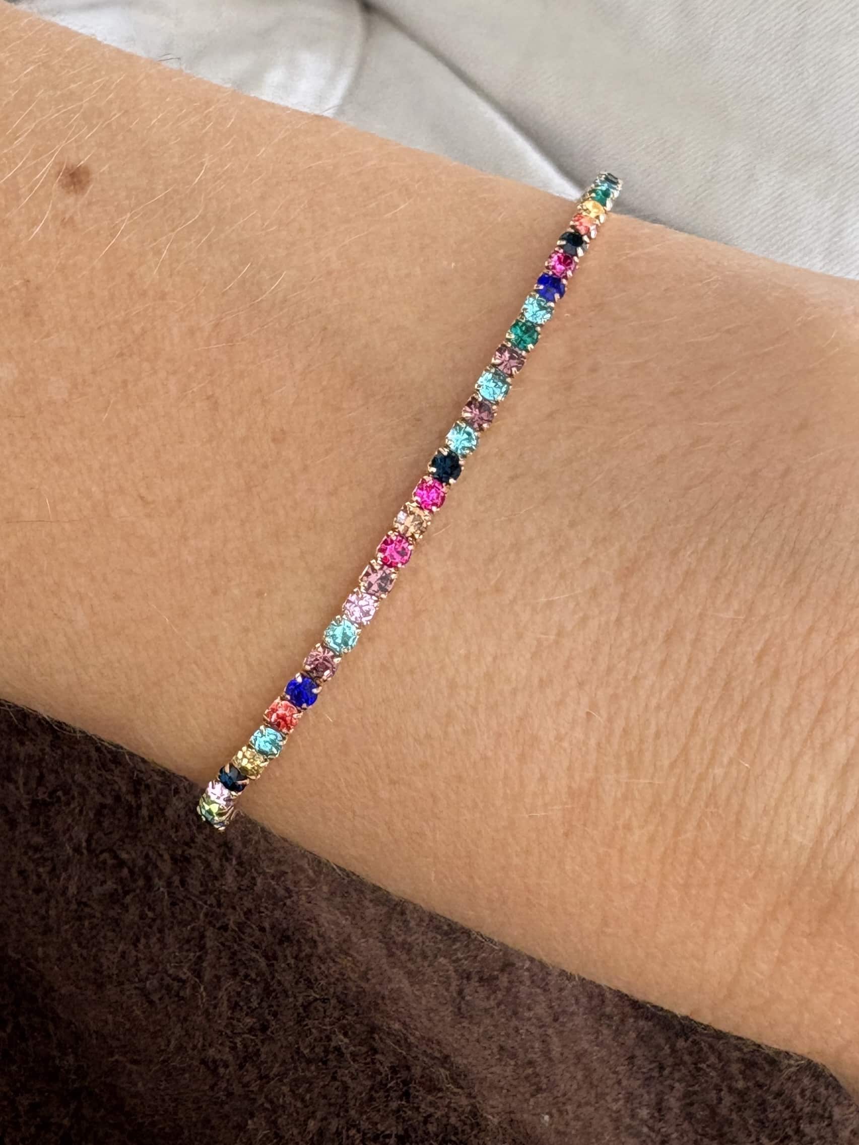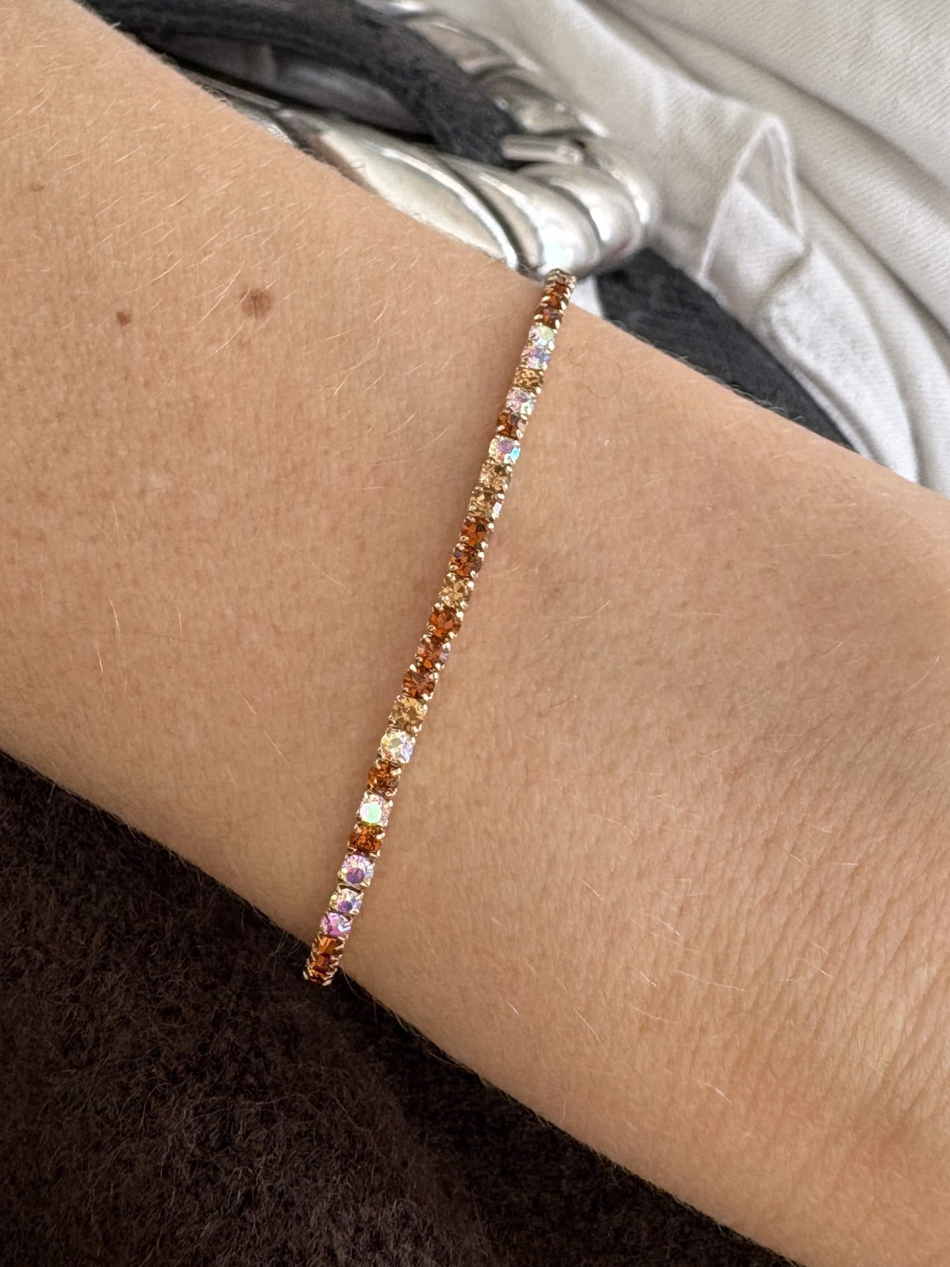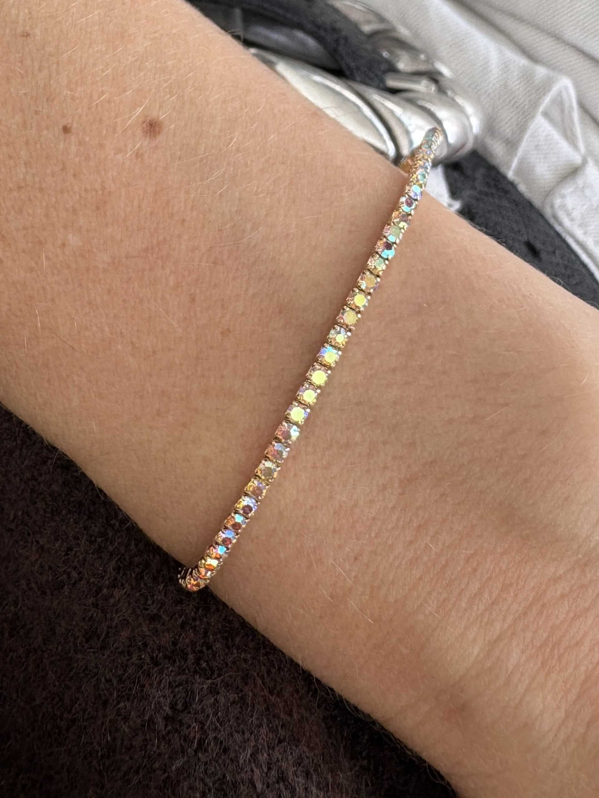 Bracelet fantaisie élastique de couleur dorée avec petits strass
