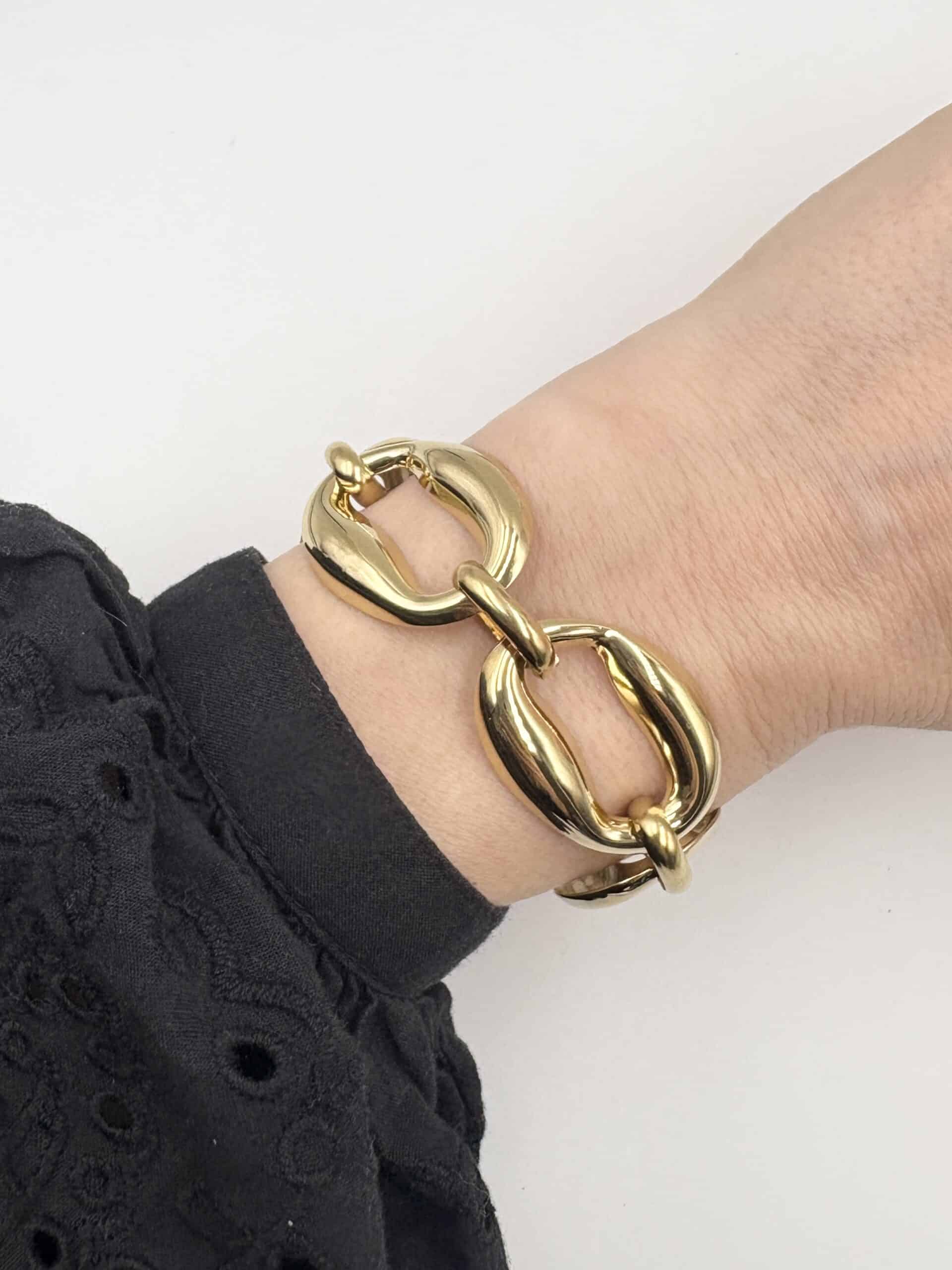 - Joli bracelet gourmette de qualité fabriqué en acier inoxydable doré: ce bijou ne rouille pas au contact de l’eau, ne noircit pas