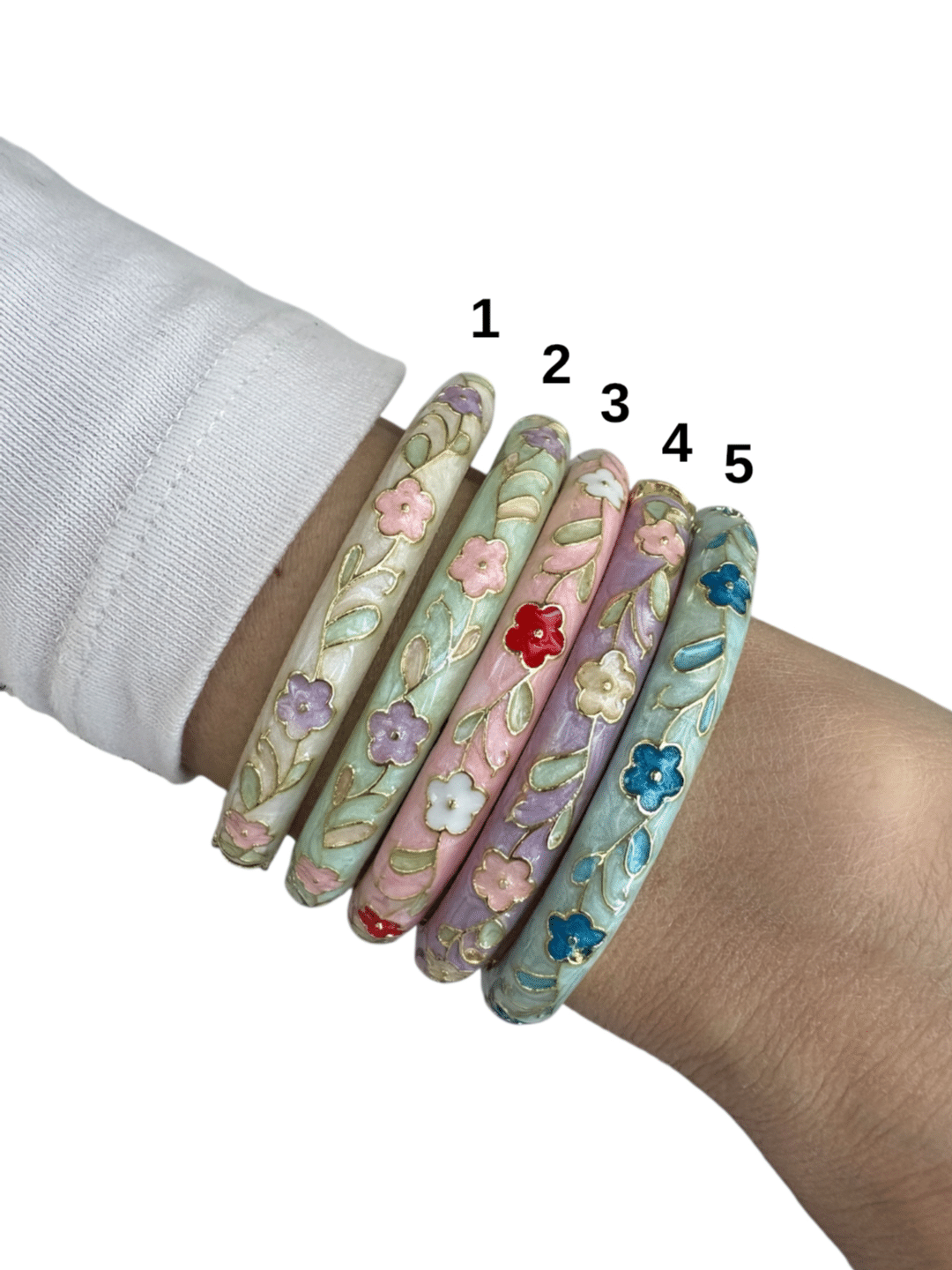 Bracelet jonc THAILANDAIS en laiton avec fleurs émaillées – Bijou tendance