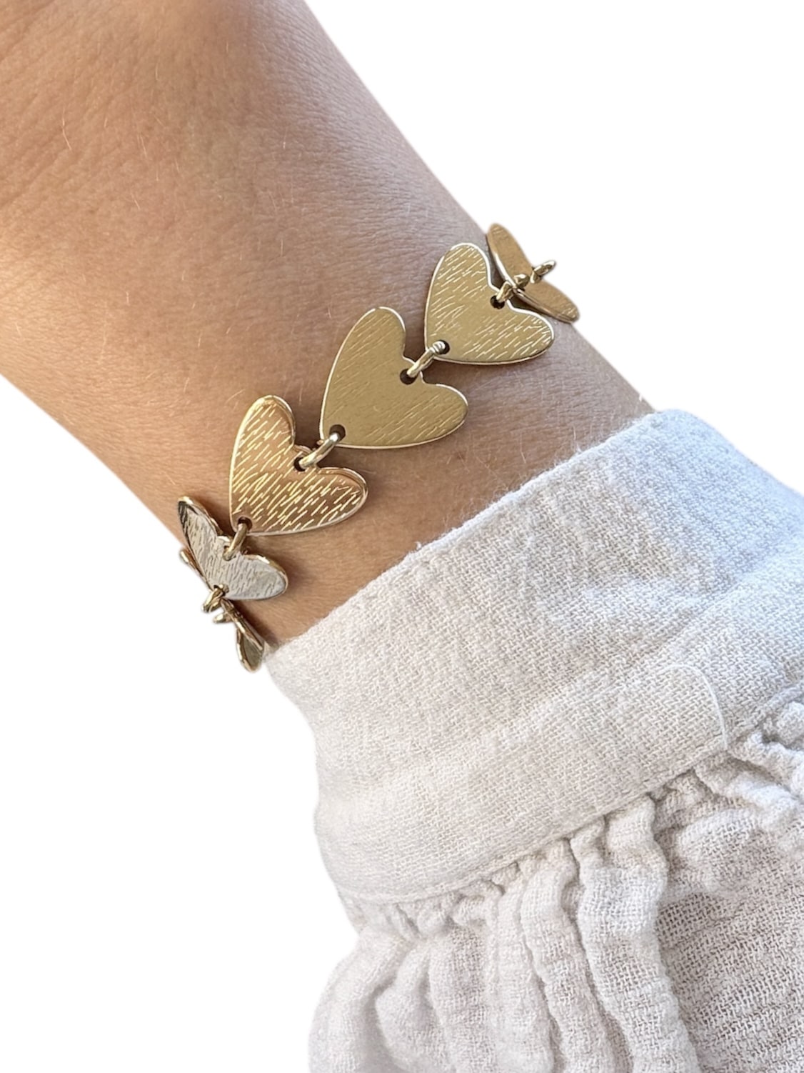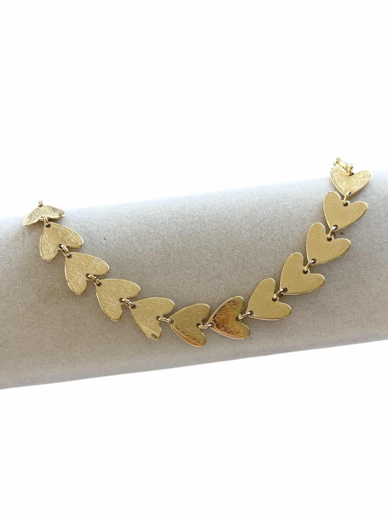 Bracelet à maillons XXL en acier inoxydable de couleur or et en forme de petits coeur griffés, ciselés – Bijou en acier inoxydable