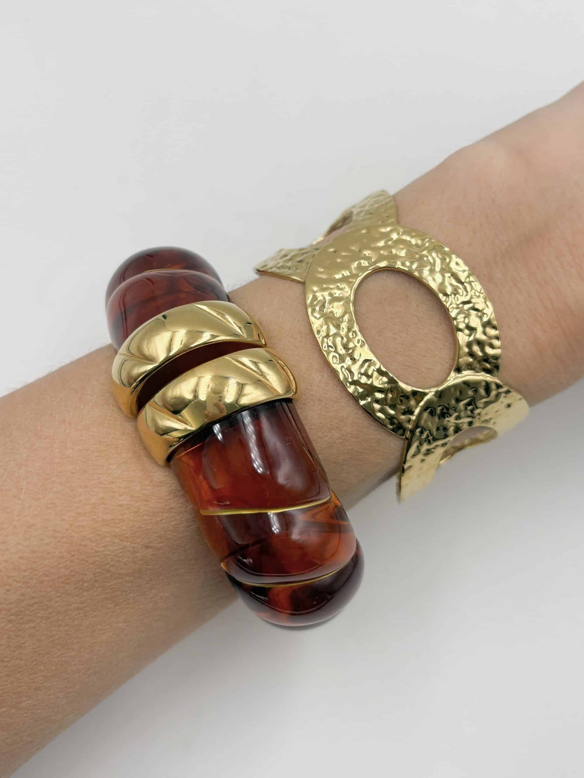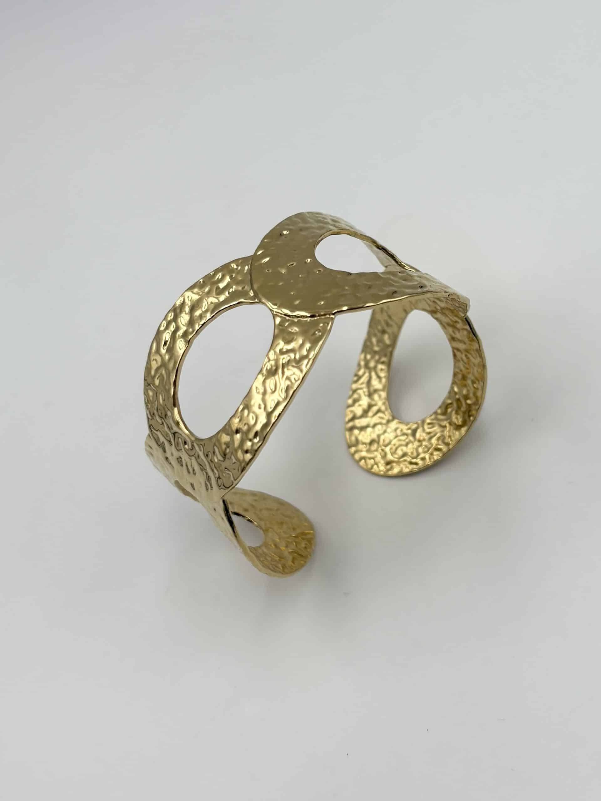 Bracelet jonc large et martelé en acier inoxydable or – Bijou en acier inoxydable