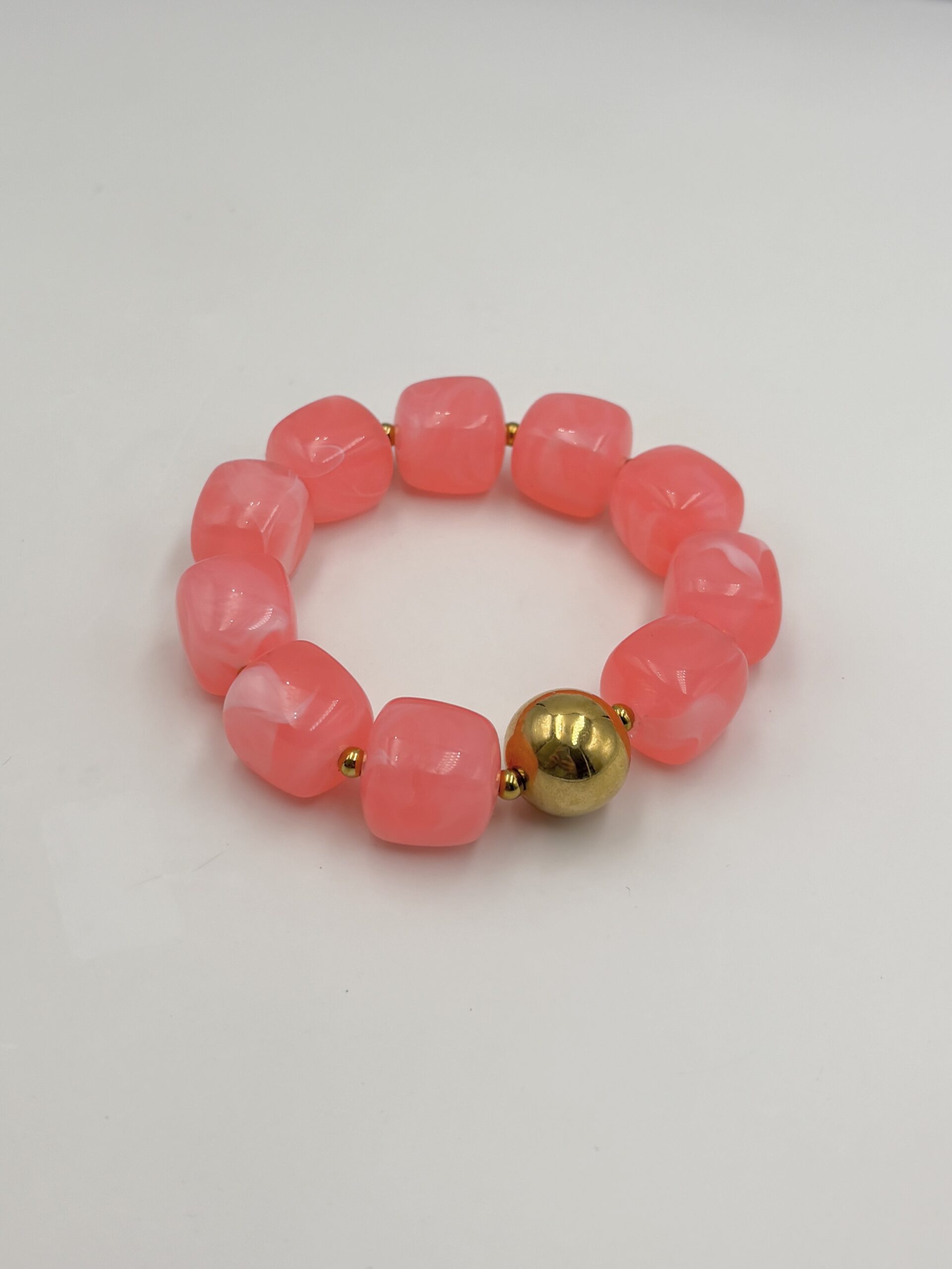 Bracelet monté sur élastique avec perles en acétate de couleur rose fluo • perles et finitions en acier inoxydable