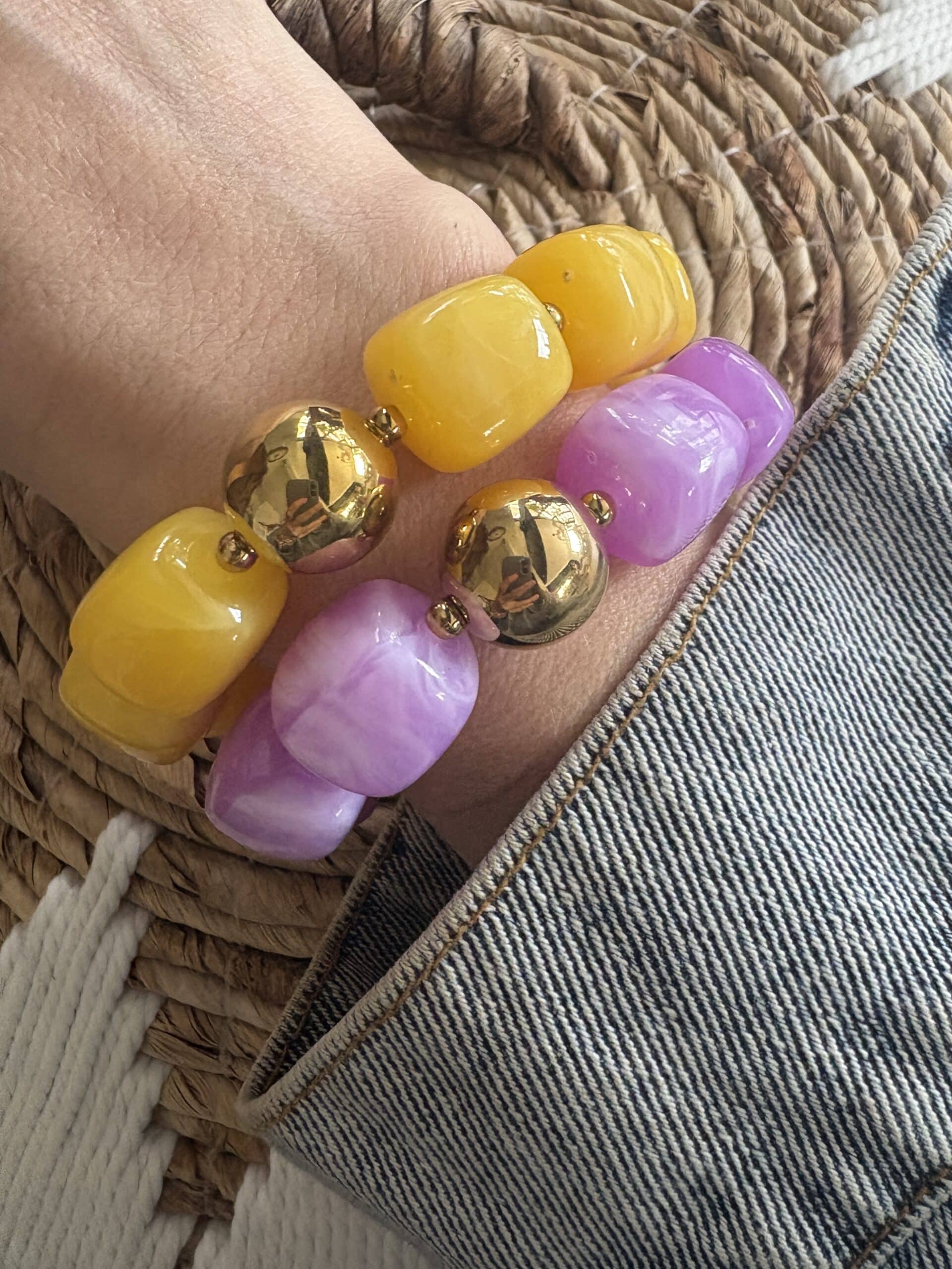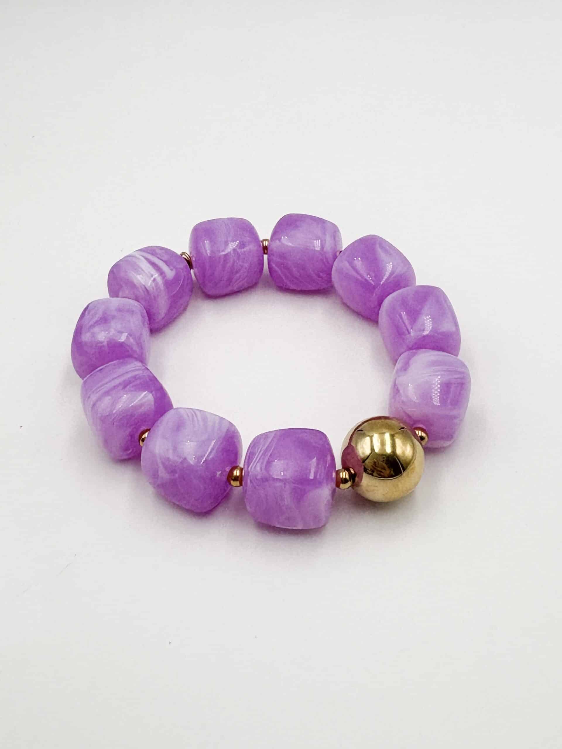 Bracelet monté sur élastique avec perles en acétate de couleur violette • perles et finitions en acier inoxydable