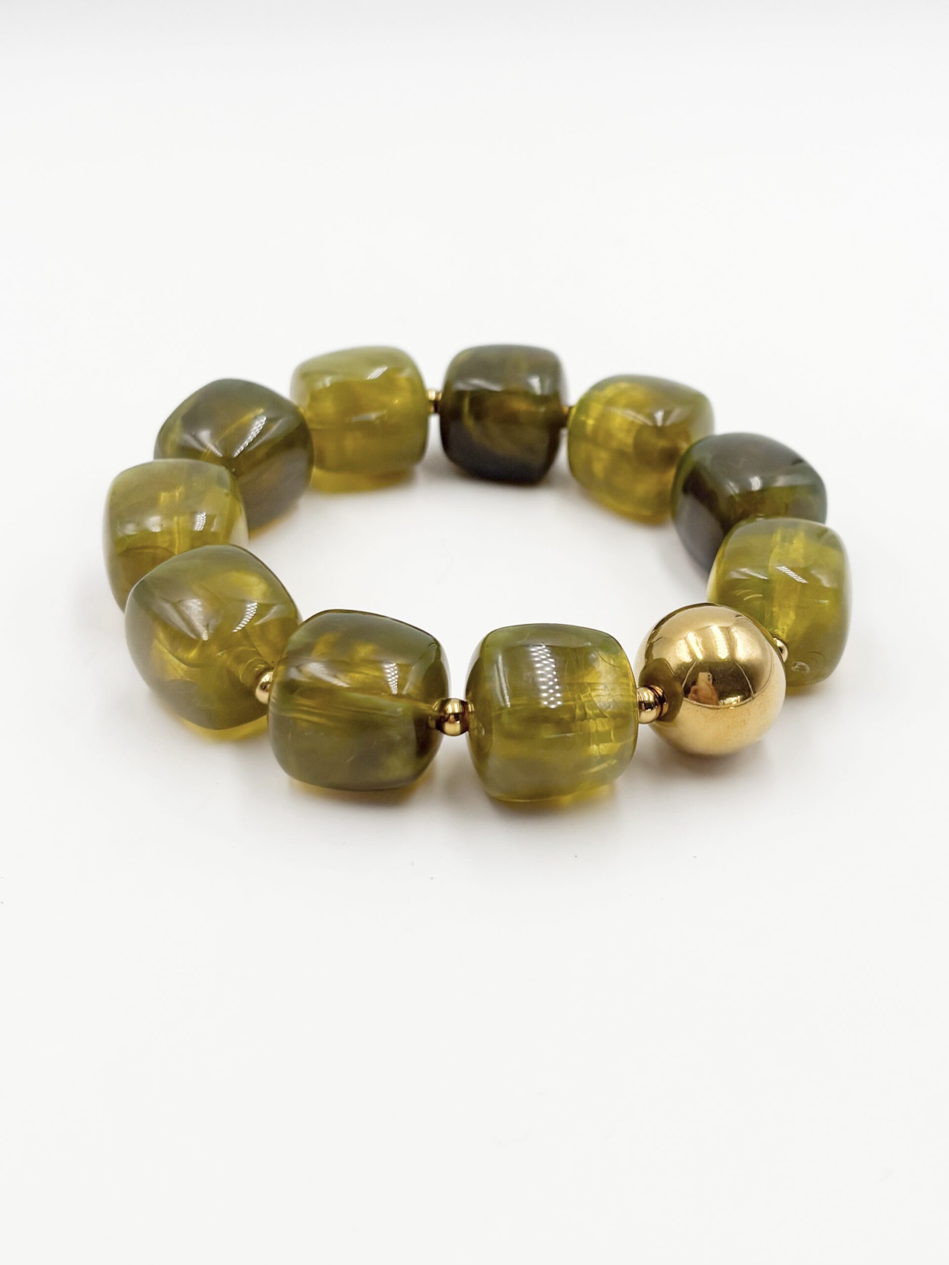 Bracelet monté sur élastique avec perles en acétate de couleur • perles et finitions en acier inoxydable