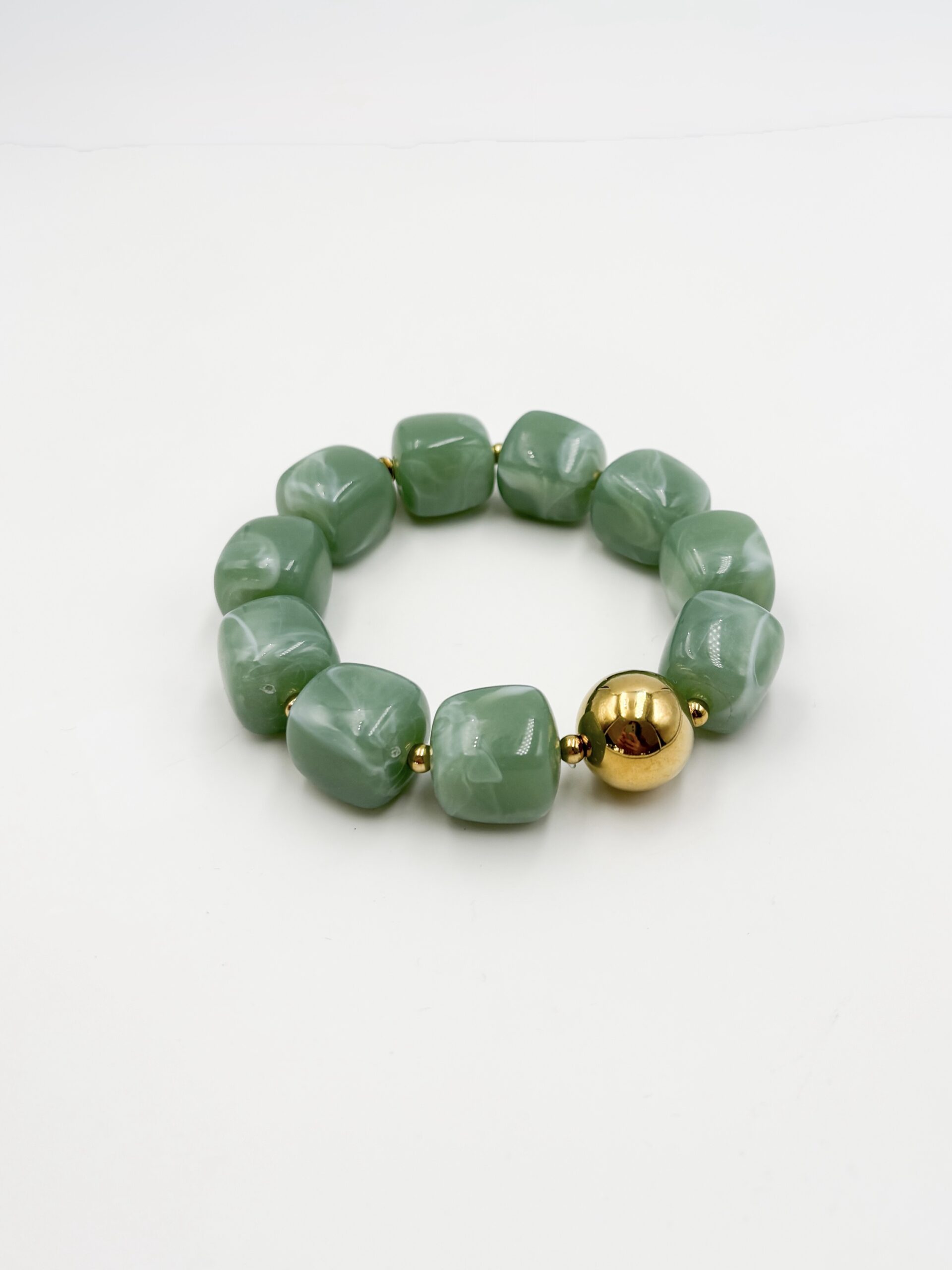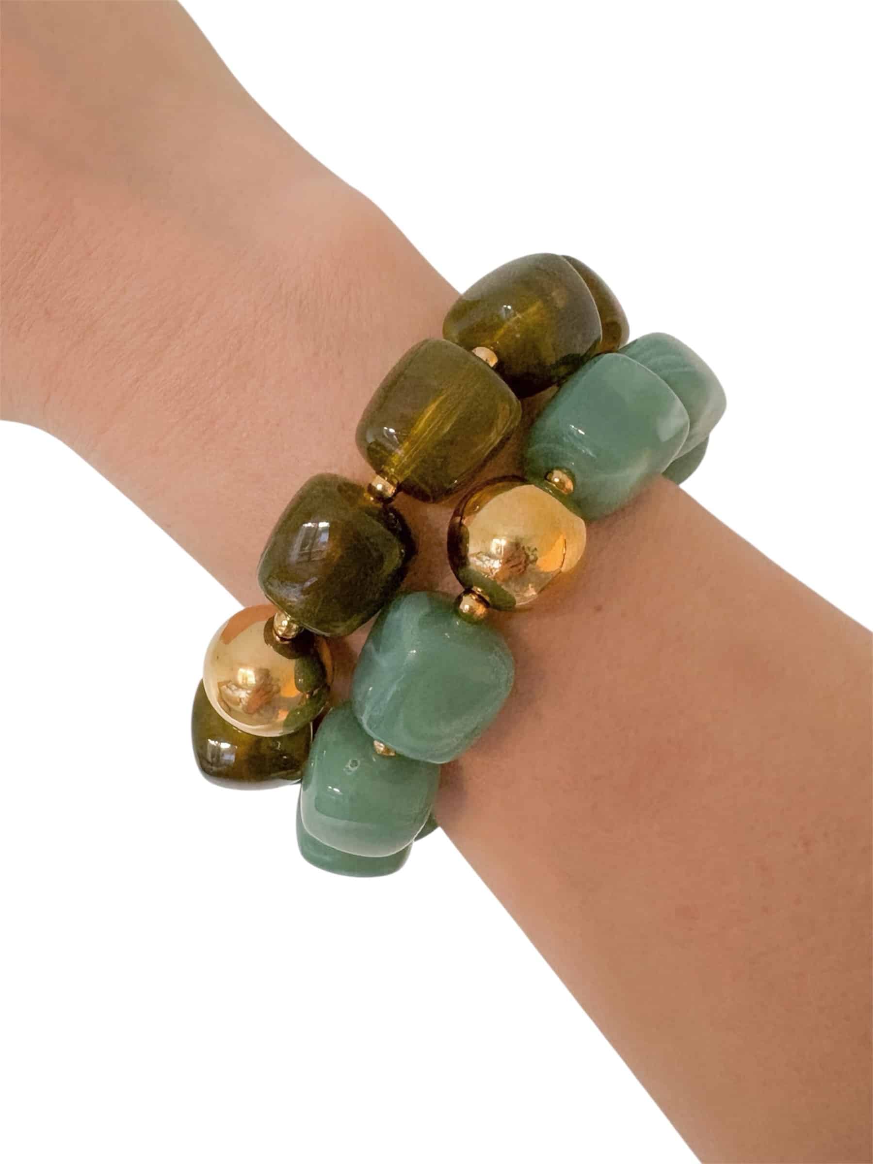 Bracelet monté sur élastique avec perles en acétate de couleur Vert Amande • perles et finitions en acier inoxydable