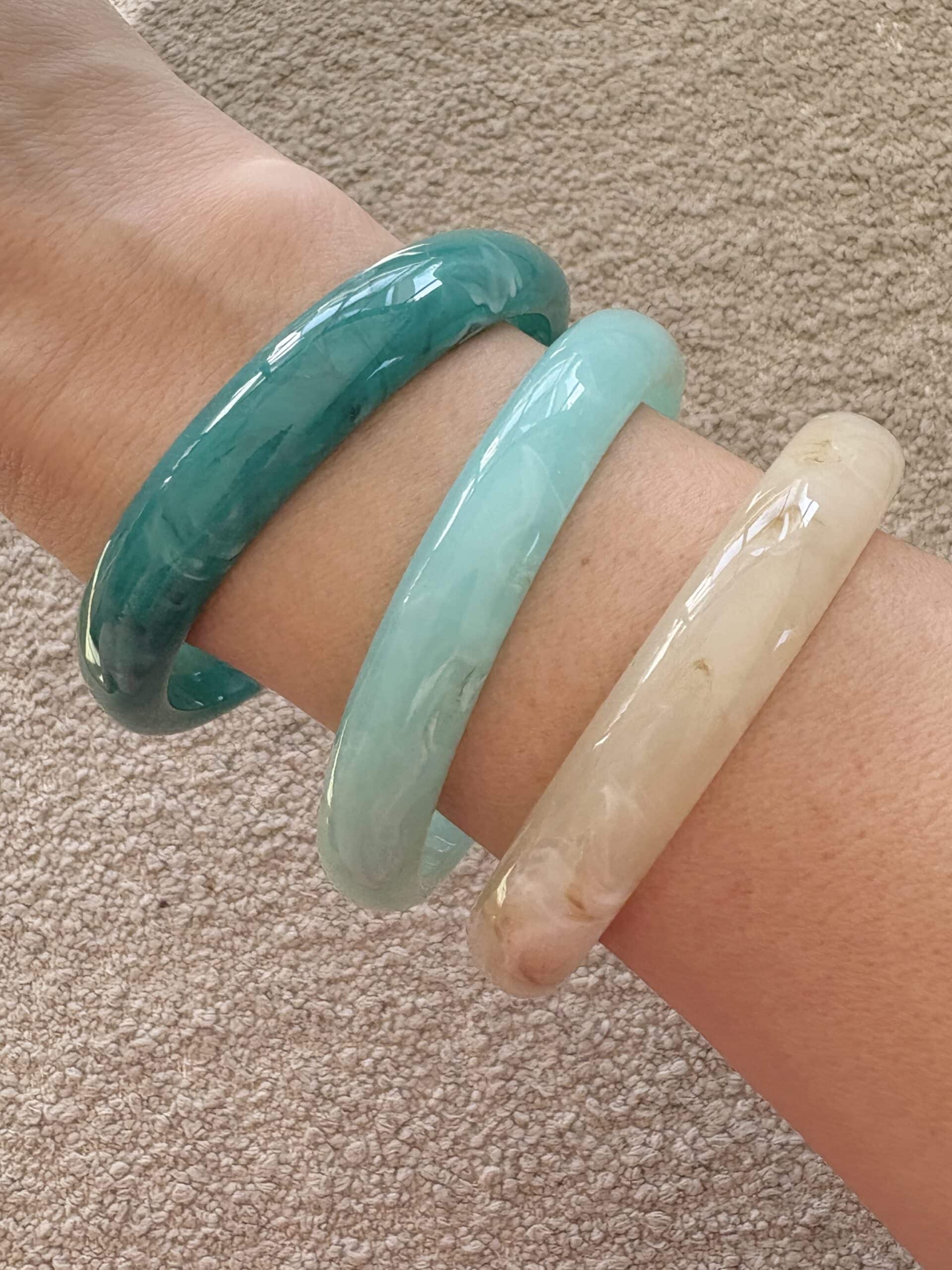 Apportez une touche d’élégance naturelle à vos tenues avec ce lot de 3 bracelets joncs en acétate aux couleurs printannières qui font du bien : crème, Bleu tursuqoise et bleu ciel. Chic et faciles à porter, ces bracelets rigides sont parfaits pour compléter un look quotidien ou accessoiriser une tenue plus habillée.