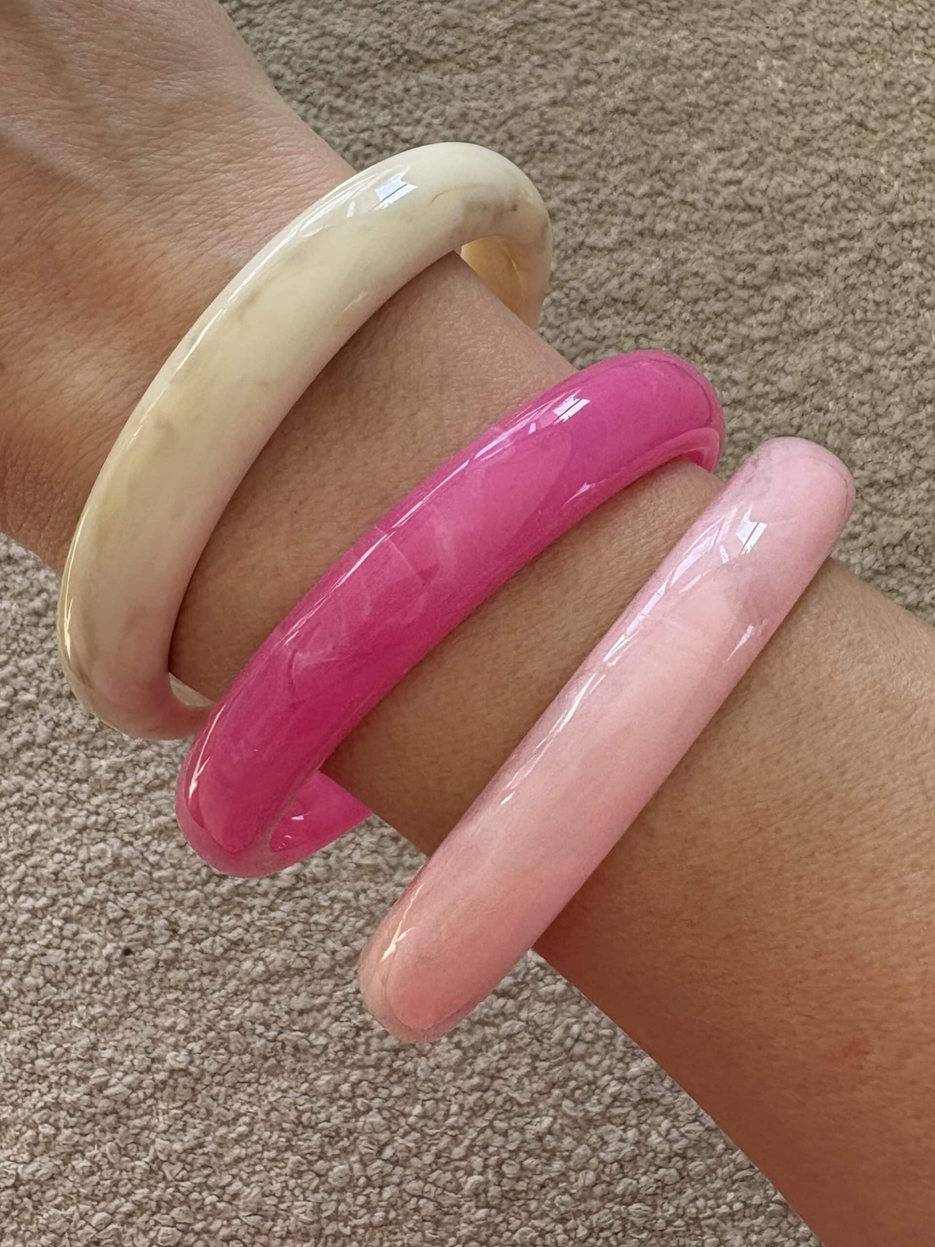 Apportez une touche d’élégance naturelle à vos tenues avec ce lot de 3 bracelets joncs en acétate aux couleurs printanières qui font du bien : crème, rose fuschia et rose pâle. Chic et faciles à porter, ces bracelets rigides sont parfaits pour compléter un look quotidien ou accessoiriser une tenue plus habillée.