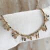 Collier très fin en acier inoxydable doré avec petites pampilles, breloques en acier inoxydable et perles de pierres naturelles  – Bijou en acier inoxydable