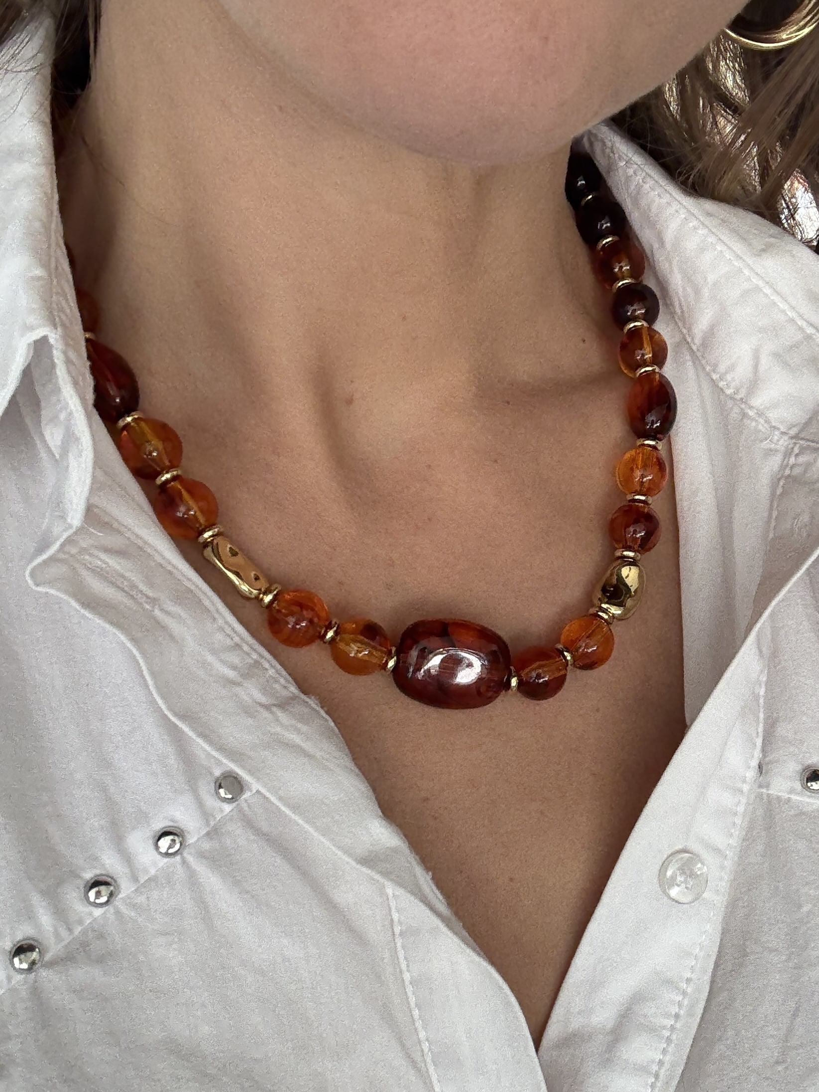 Collier en acier inoxydable et perles d’acétate couleur ambre – Délicatesse et amour <3