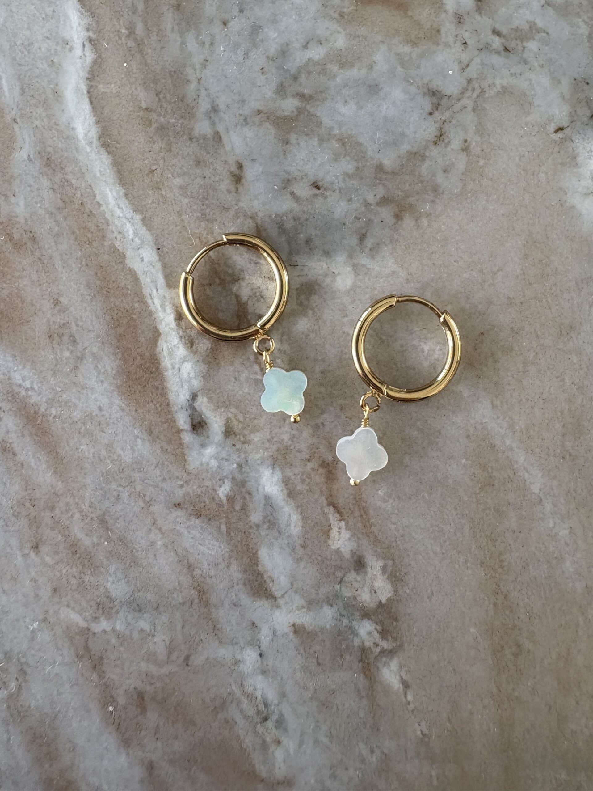 Créoles en acier inoxydable et petits trèfles en pierre naturelle de nacre
