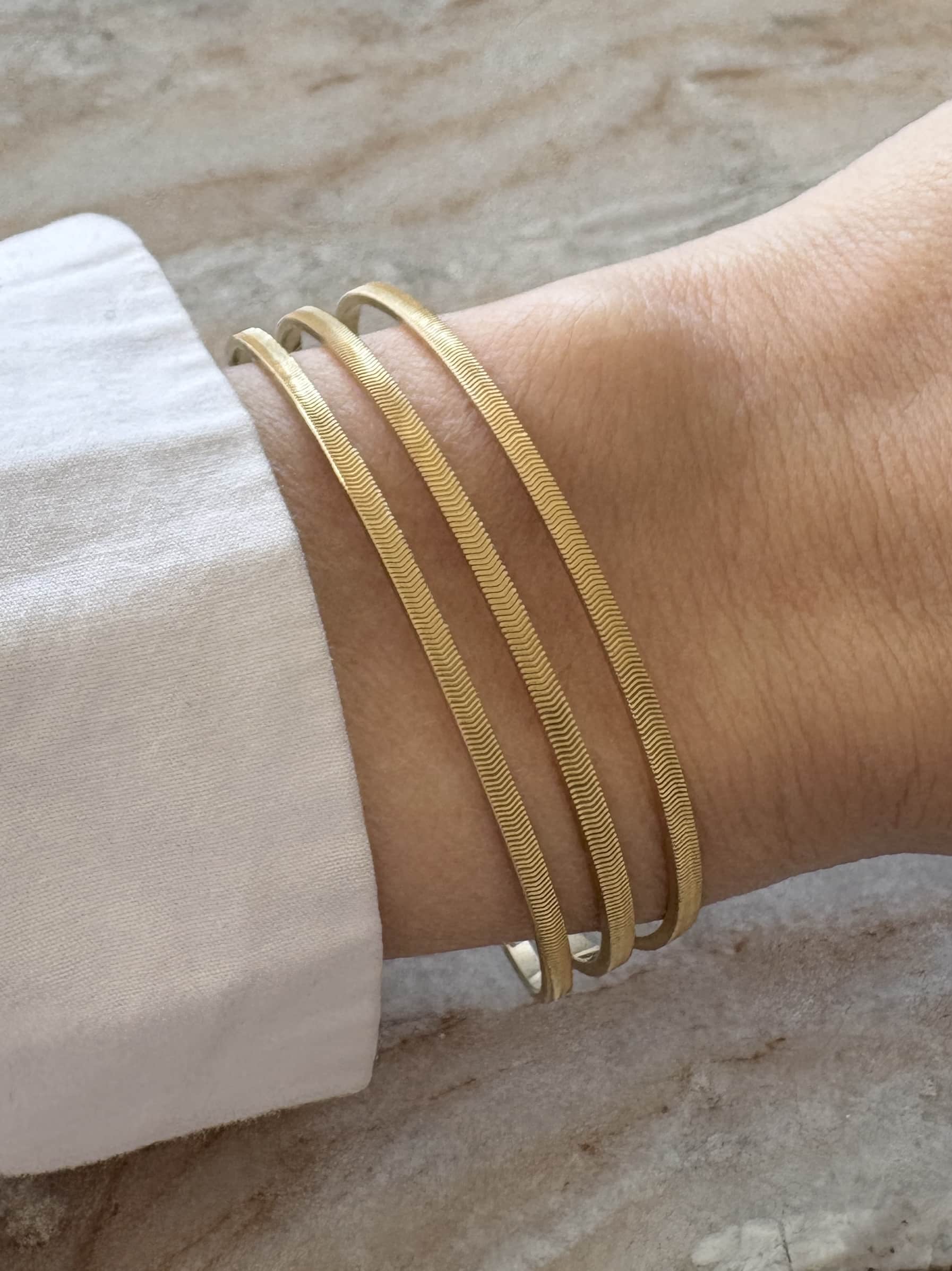 Bracelet manchette jonc en acier inoxydable doré doté de trois rangs finement ciselés – Bijou en acier inoxydable