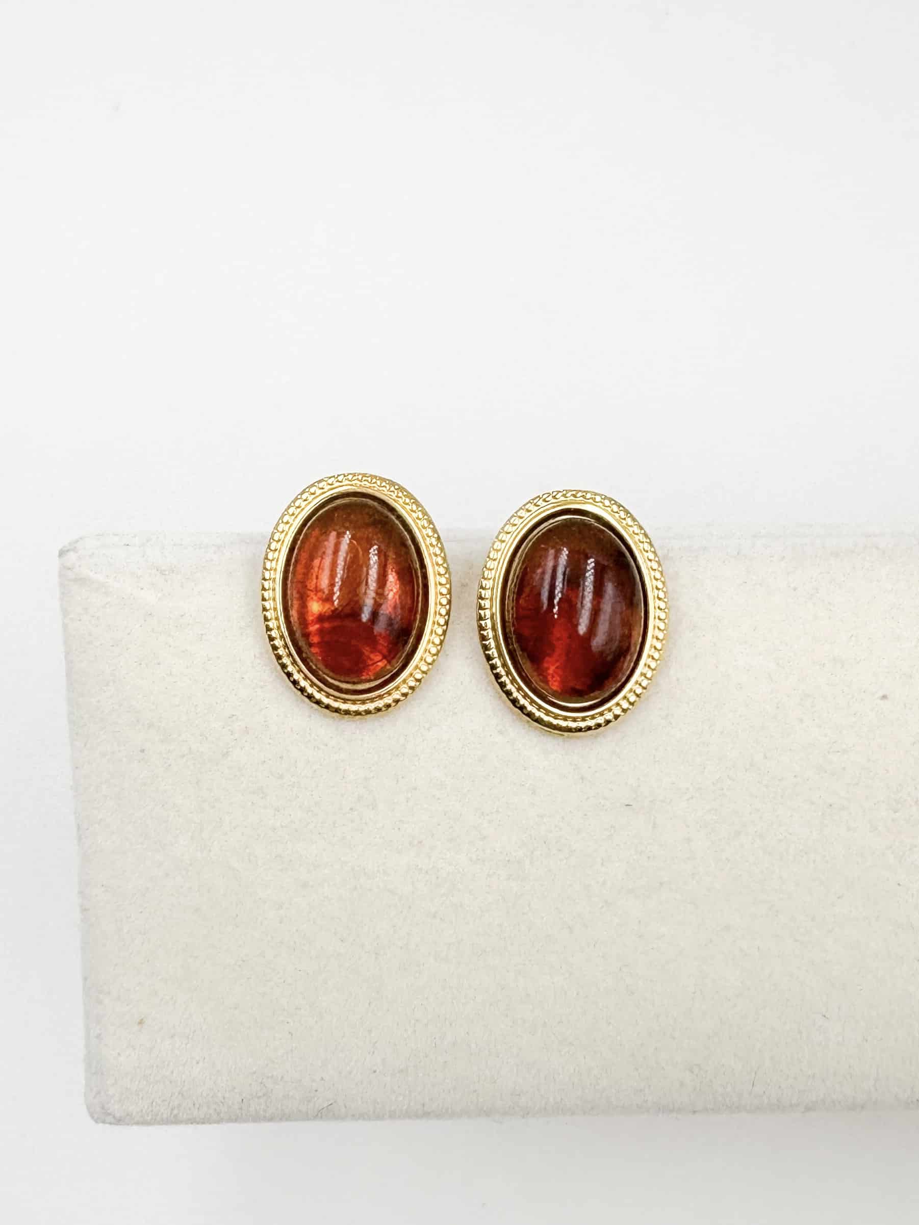 Puces d’oreilles en acier inoxydable or de forme ovale avec une imitation pierre d’ambre en leur centre – Bijou en acier inoxydable
